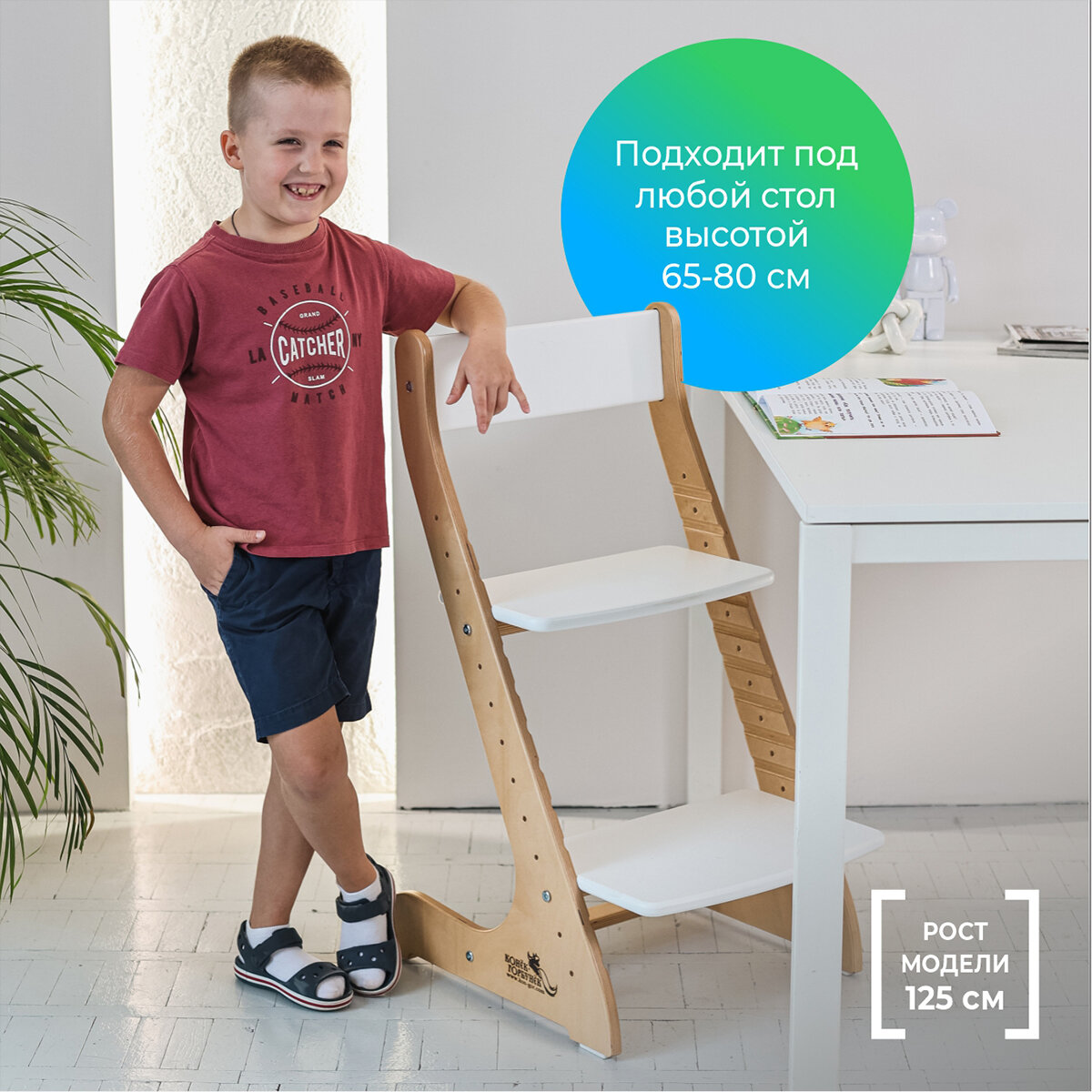 Растущий стул для детей, детский деревянный стульчик для школьника Конек Горбунек Стандарт, цвет Белый