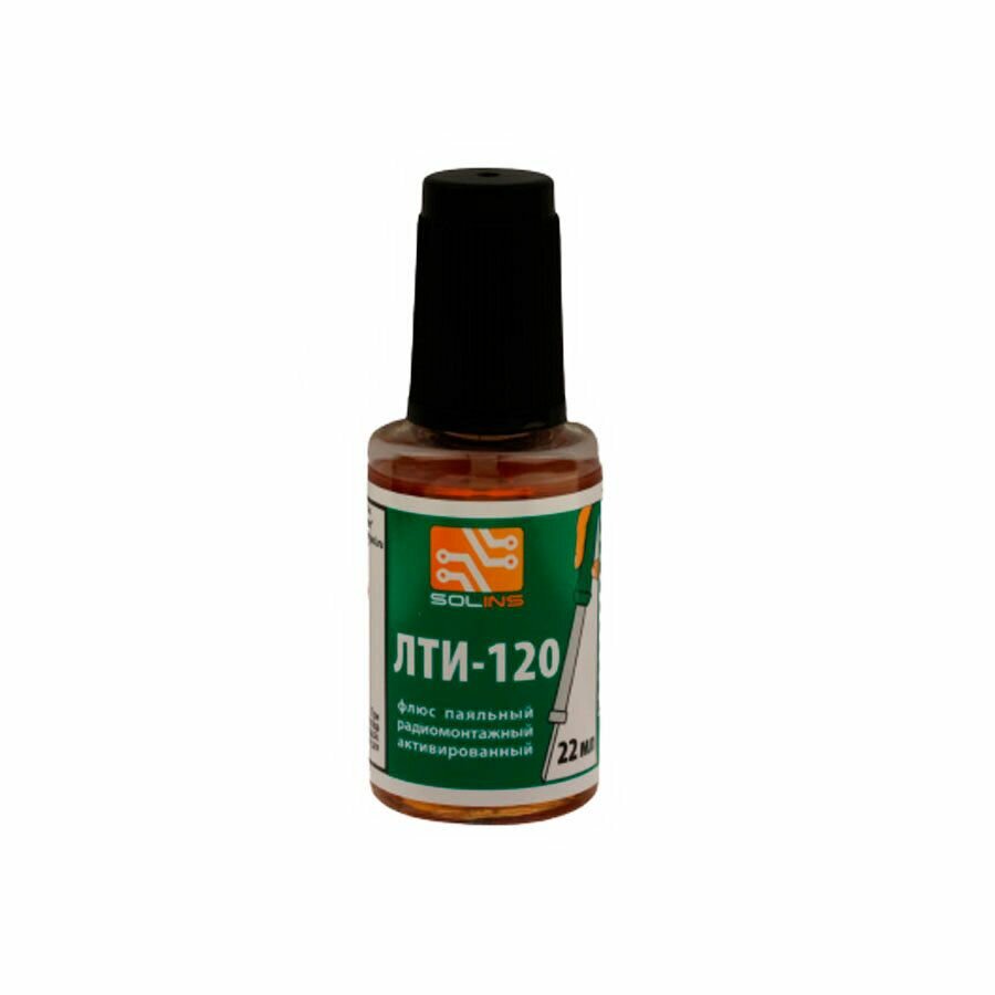 Флюс для пайки "ЛТИ-120" Solins, канифоль, с кисточкой, ПЭТ флакон, 22мл, 10шт.