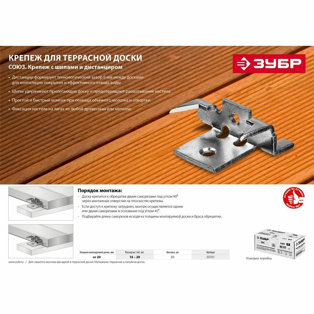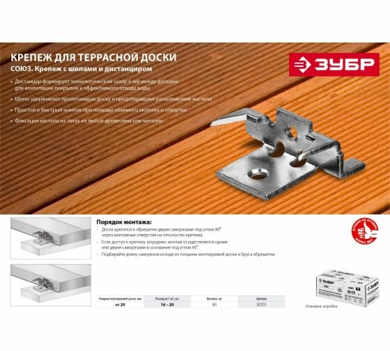 Крепеж с шипами и дистанциром для террасной доски Союз, 80 шт, ЗУБР 30701 интересное:
