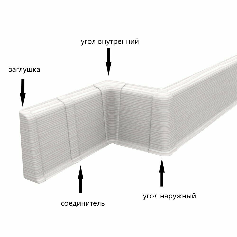 Угол наружный для плинтуса напольного Деконика (DECONIKA) высотой 70 мм, 255 Ясень бьянко - 2 шт