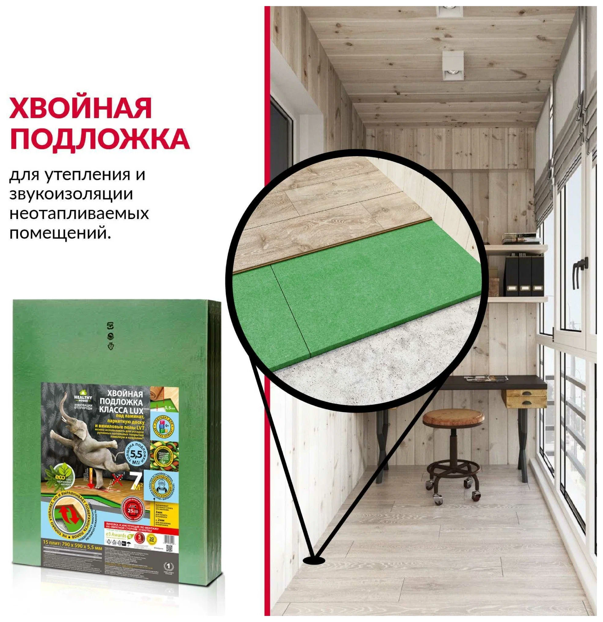 Экологичная одложка хвойная под ламинат и паркет Steico 5,5 мм (7м2)