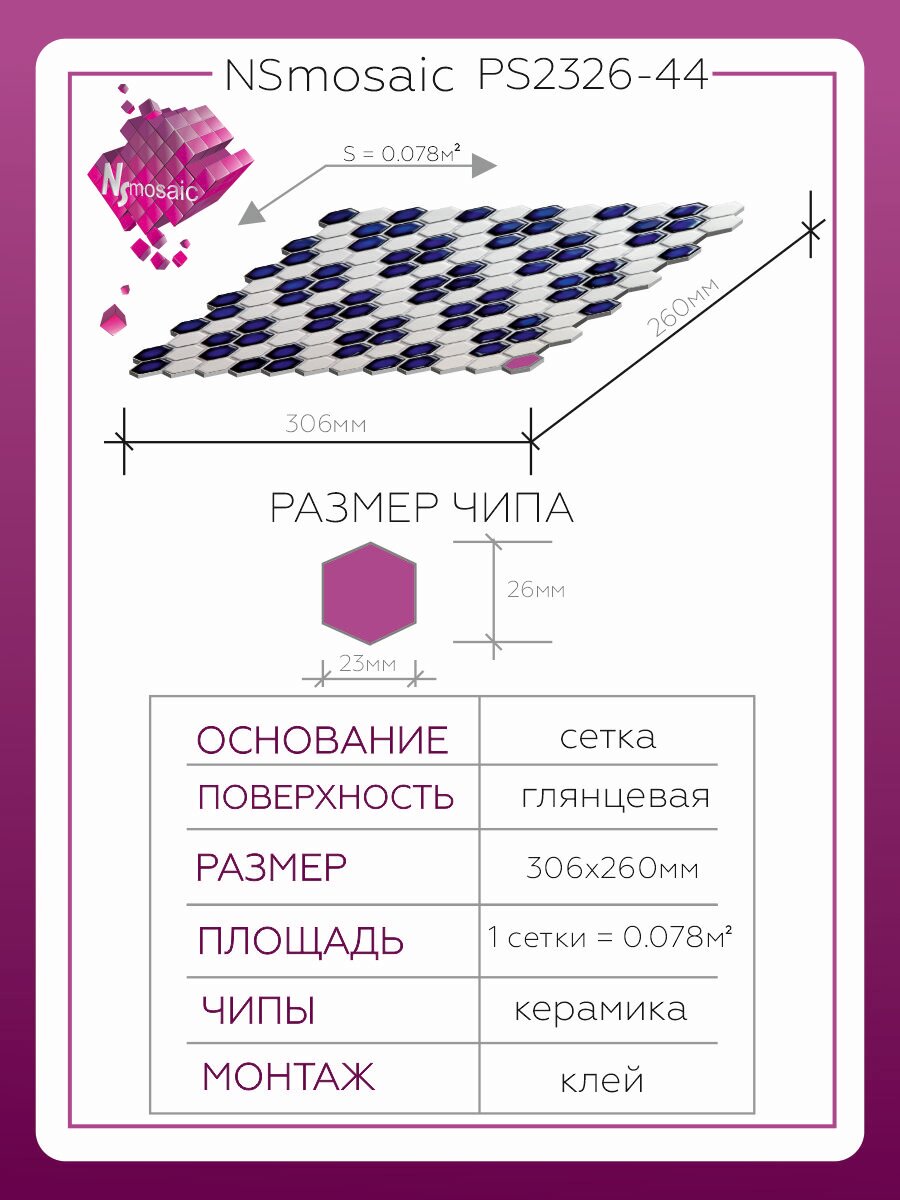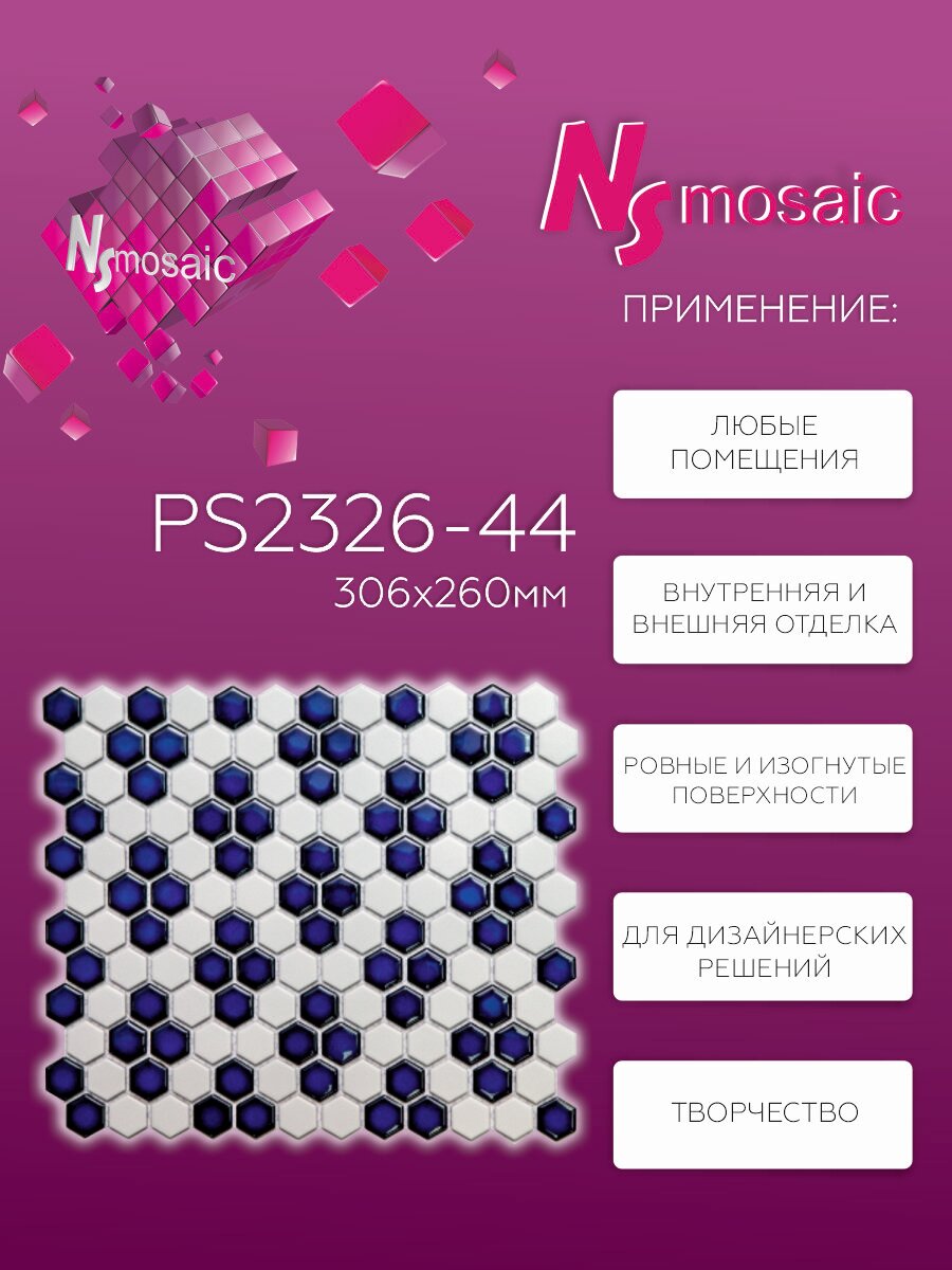 Мозаика керамическая NS mosaic PS2326-44 26х30 чип 23х26 уп 5 шт интересное: