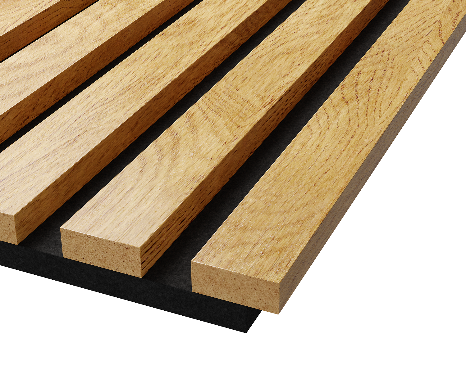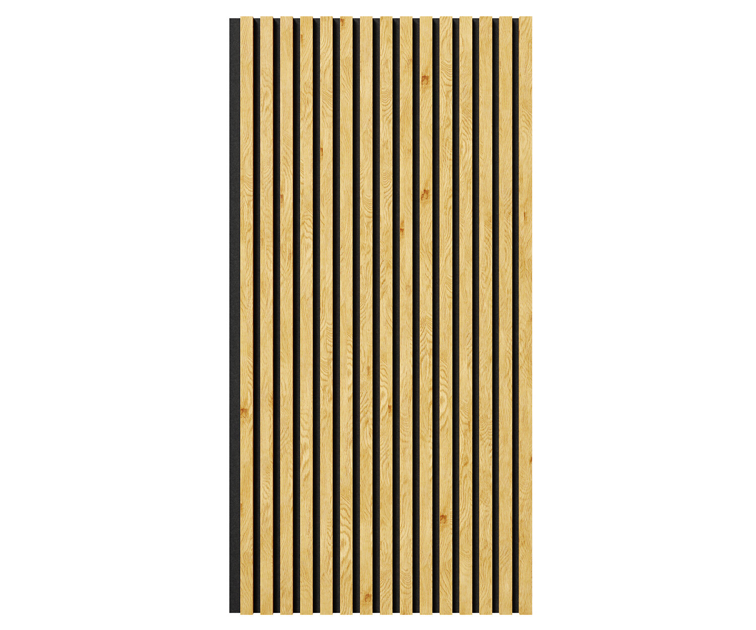 Акустическая панель, черный войлок, 1200х600х21мм, рейки МДФ, шпон дуб клэр светлый. Cosca Decor