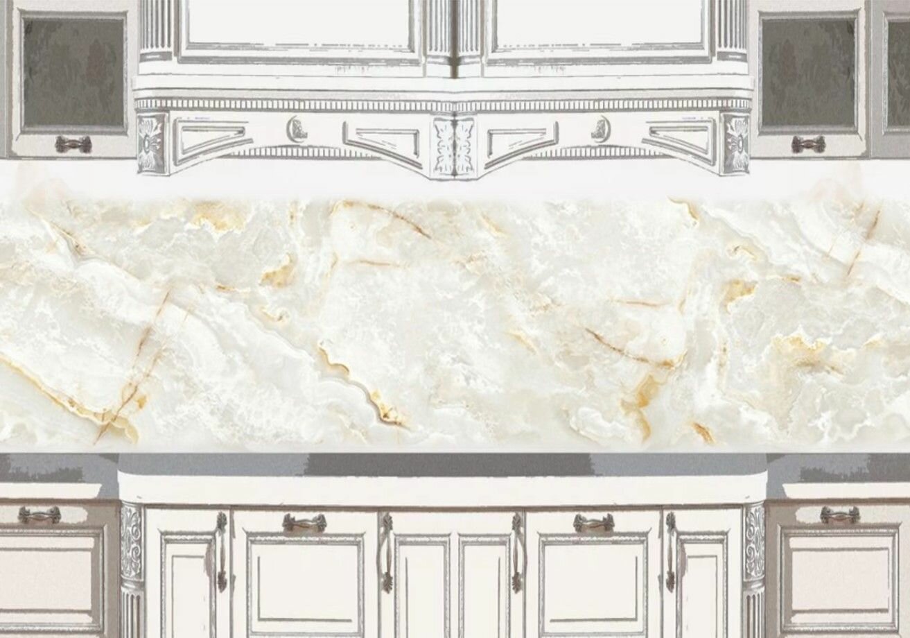 Фартук для кухни на стену 3000х600 мм, полуглянцевый Рецциато. Панель стеновая ПВХ влагостойкая декоративная