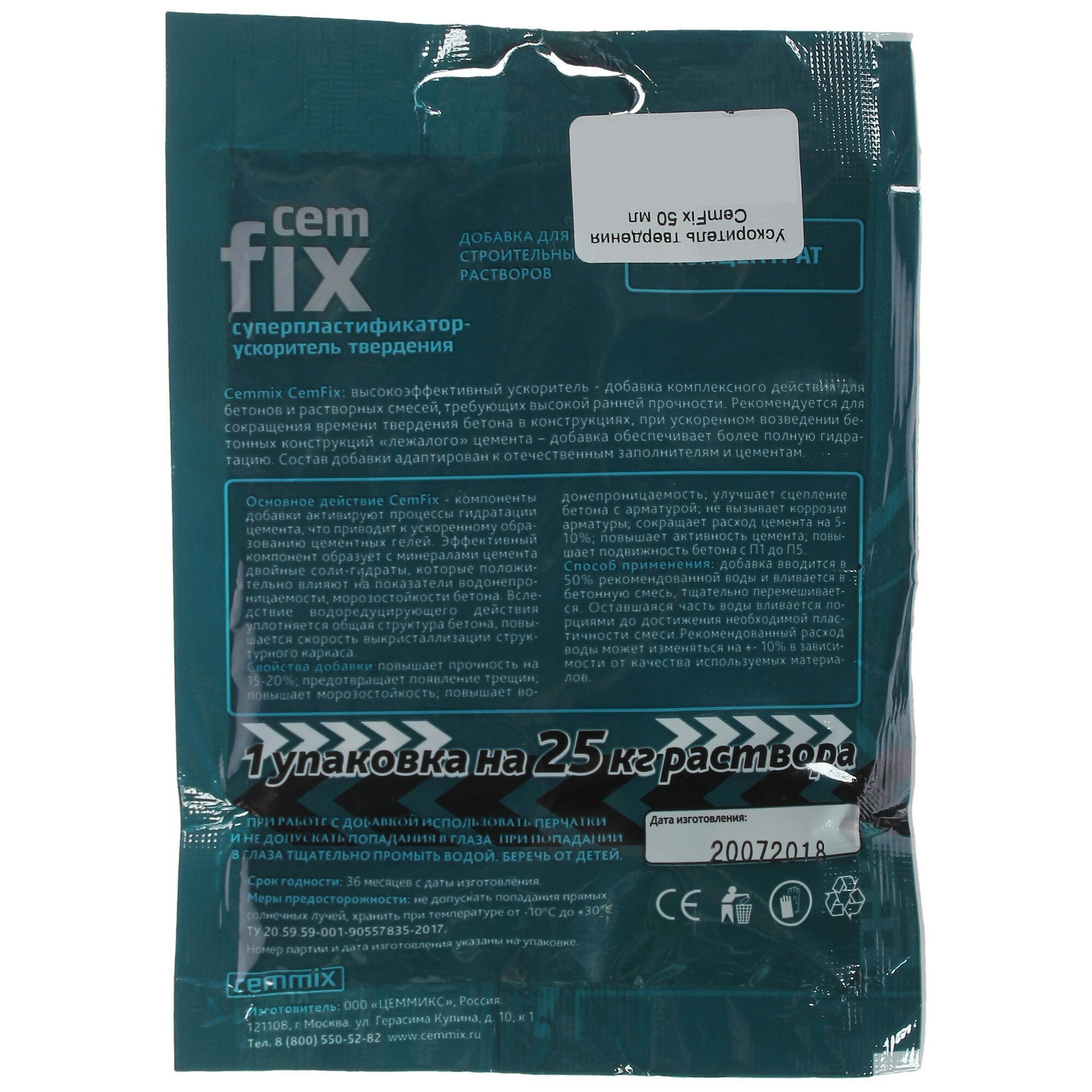 CEMMIX CemFix ускоритель твердения концентрат саше (50мл) / CEMMIX CemFix ускоритель суперпластификатор твердения (50мл)