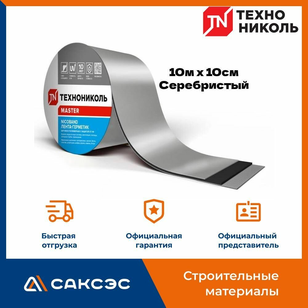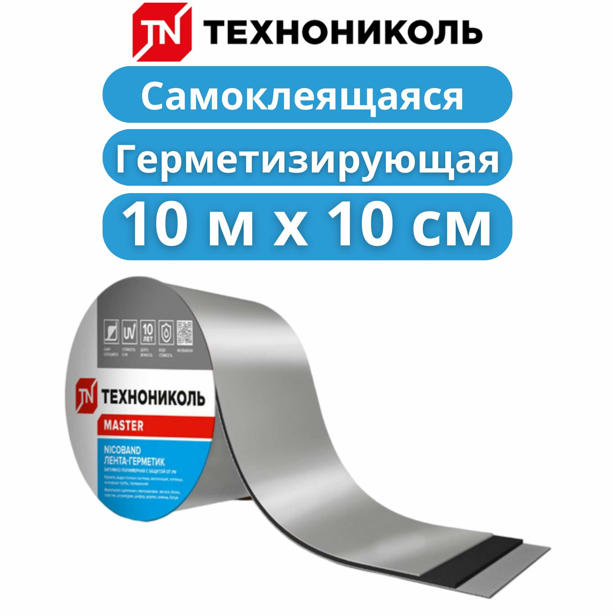 Самоклеящаяся герметизирующая лента ТехноНиколь NICOBAND д:10м, ш:10см, серебристый