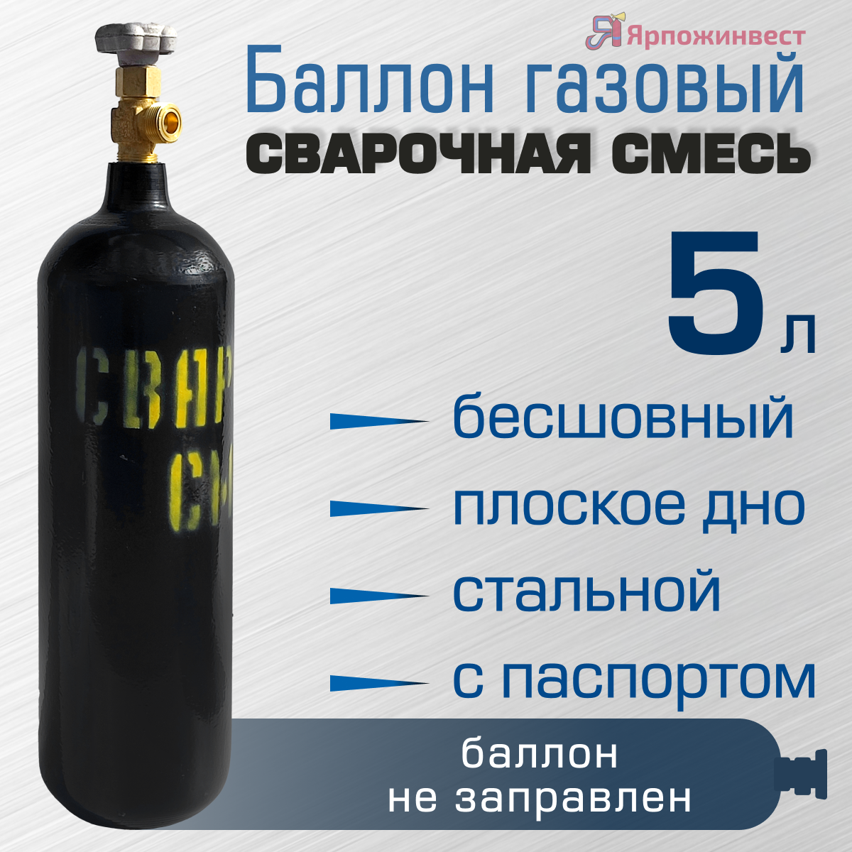 Баллон газовый сварочная смесь 5 л бесшовный ЯрпожИнвест, пустой