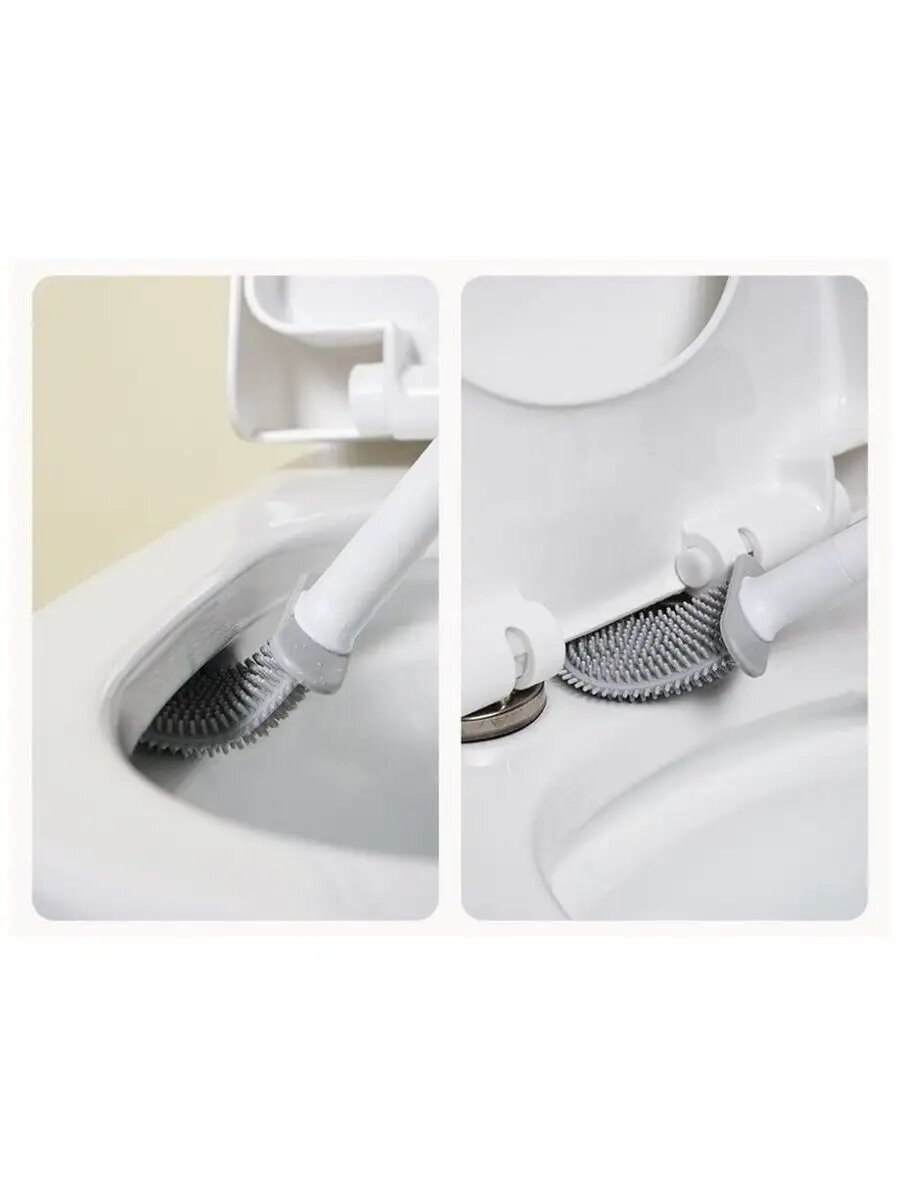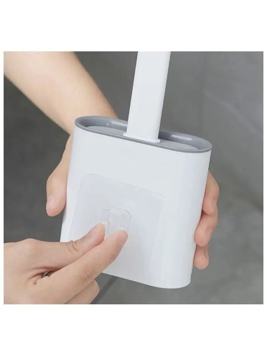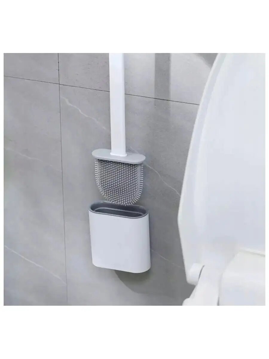 Щетка туалетная из износостойкой термопластичной резины с подставкой, размер 9,8 х 4,3 х 36,5 см, цвет серый