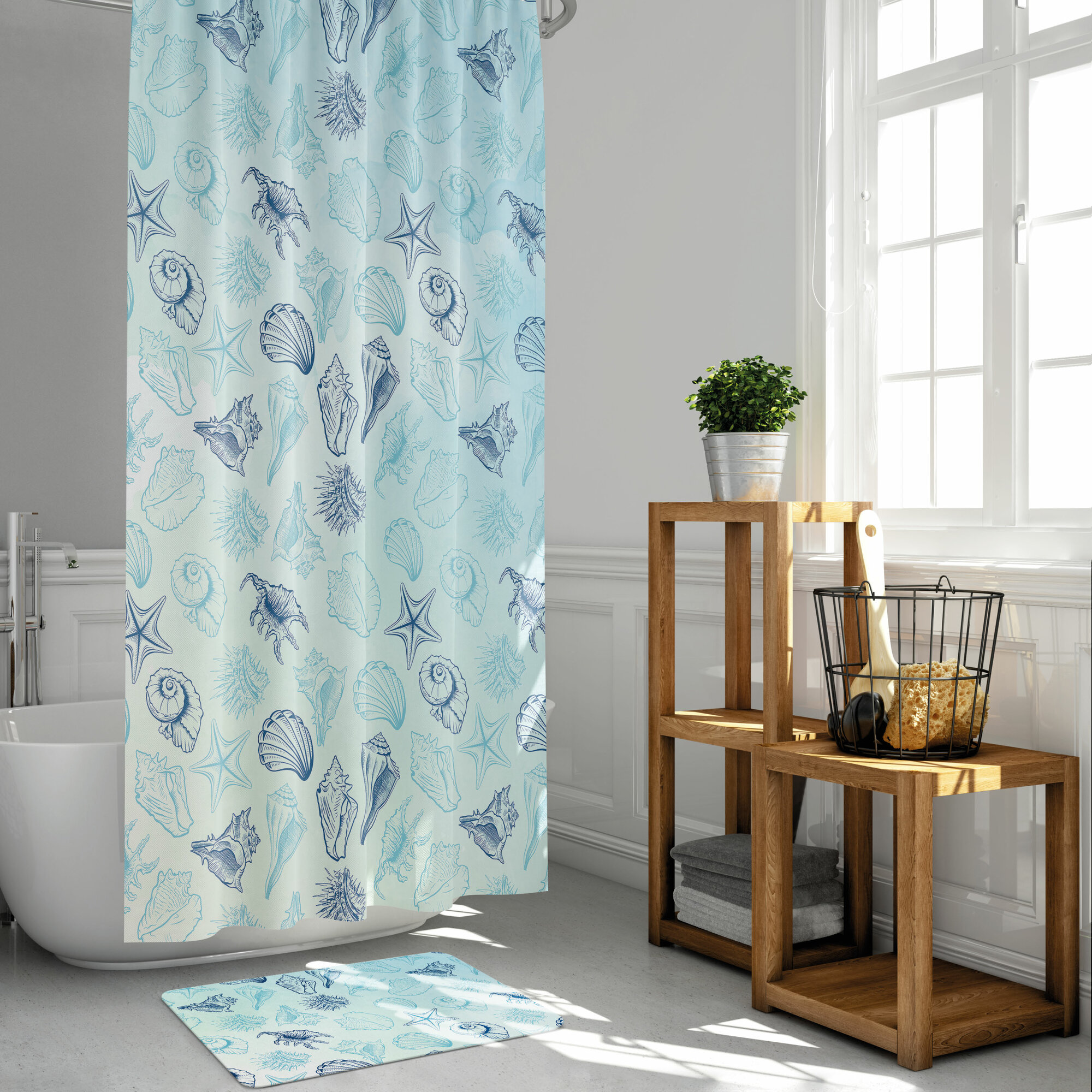 Набор для ванной комнаты "Ракушки": коврик + занавеска