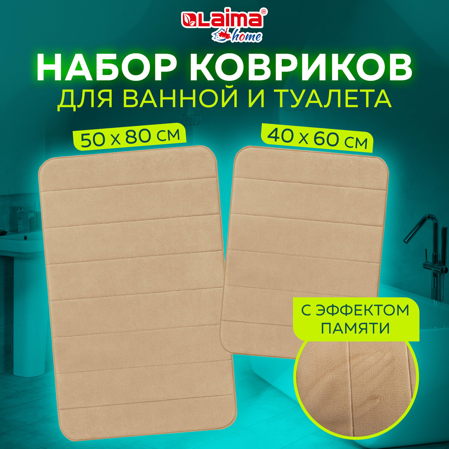 Купить Комплект ковриков LAIMA Мemory Еffect, для ванной 50х80 см, и туалета 40х60 см, бежевый, Нome
