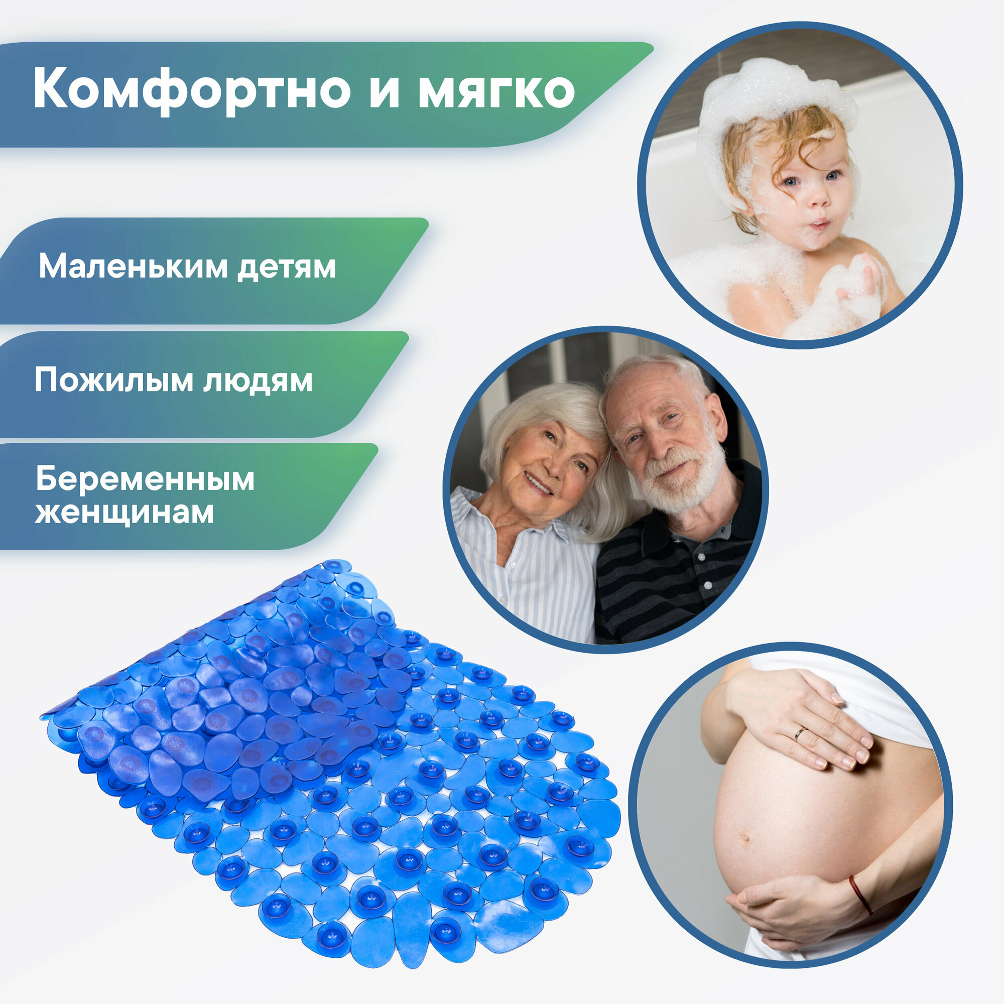 Коврик для ванной с присосками VILINA противоскользящий резиновый массажный для ванны 36х69 см синий