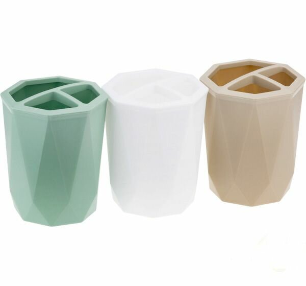 Подставка для зубных щеток пластиковый 3 отделения «Призма», 9.5×9.5×11.5 см, белый