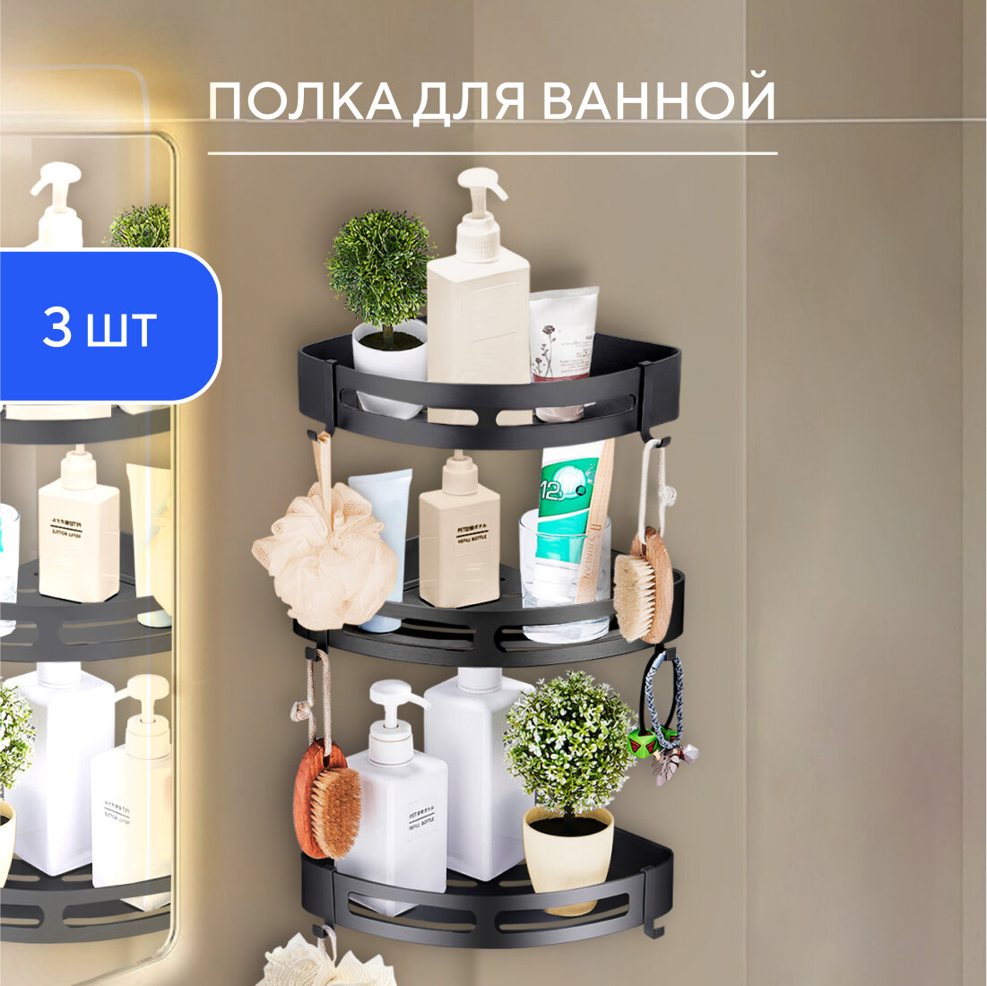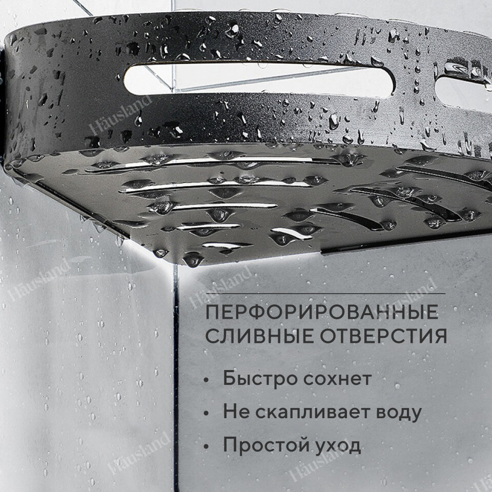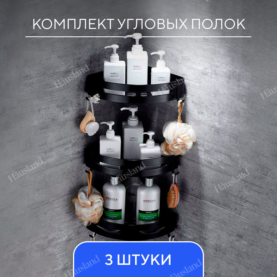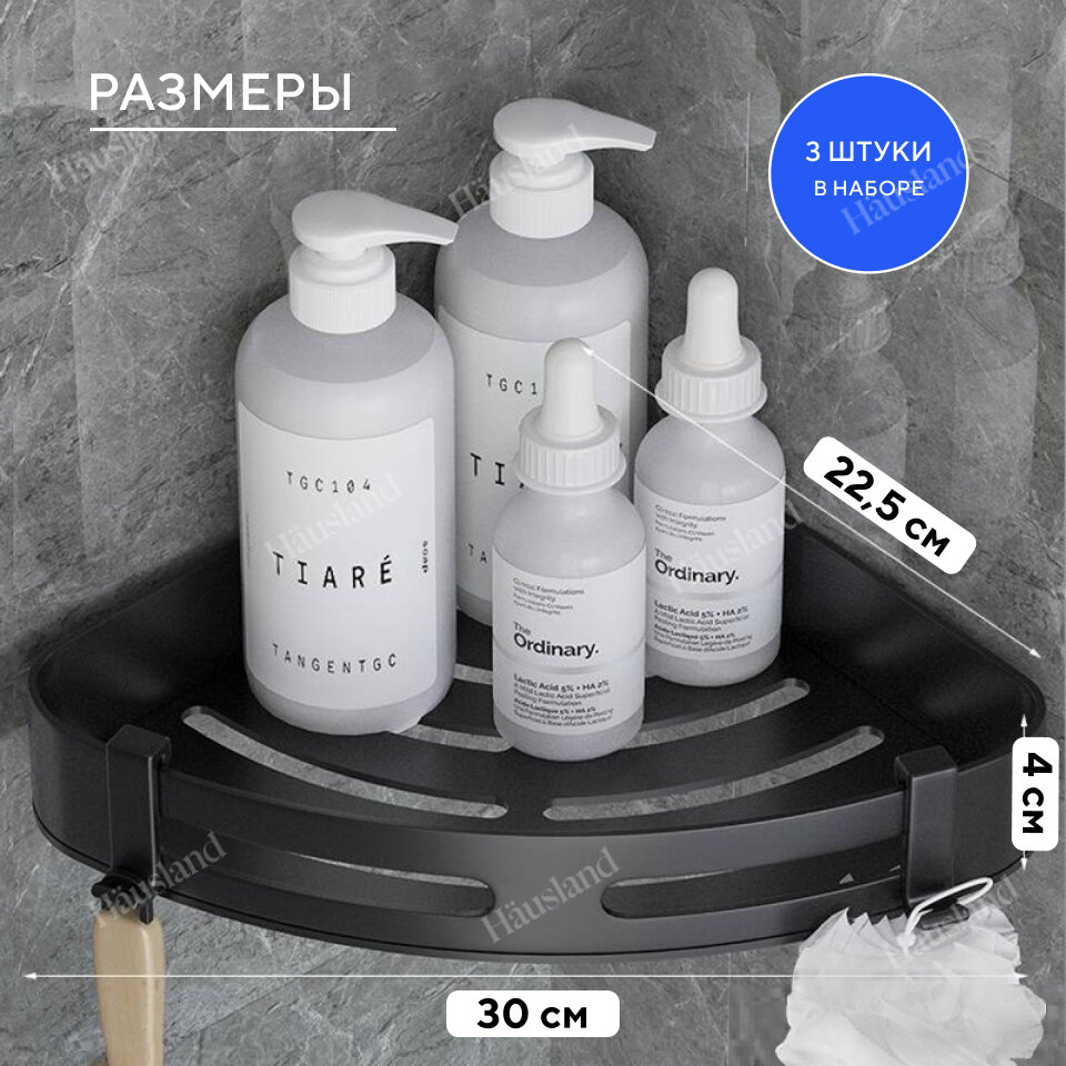 Купить Полка для ванны Hausland без сверления, угловая, 3шт, 4х30х22,5 см, черная, металл