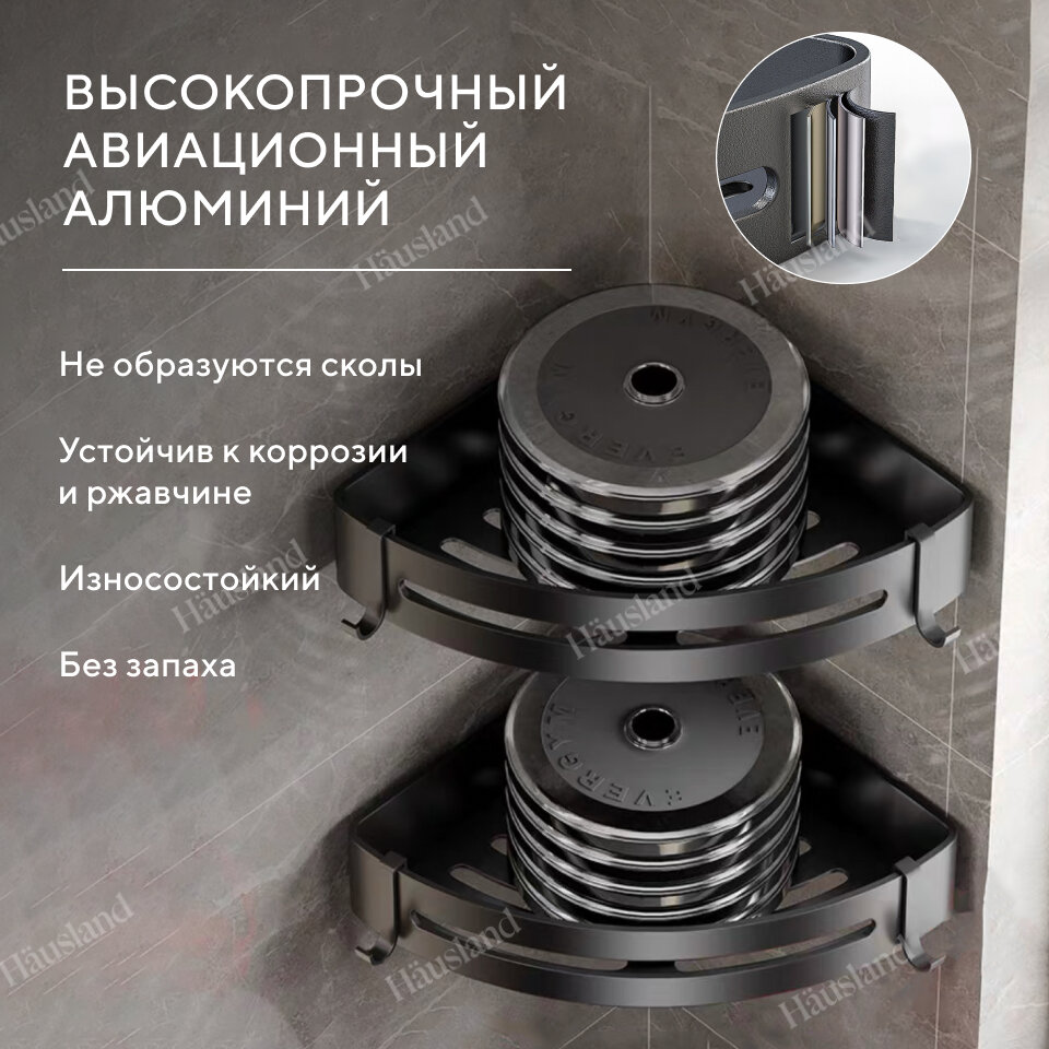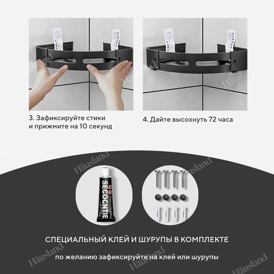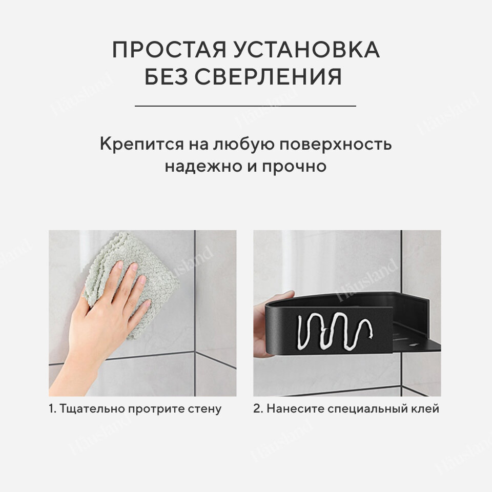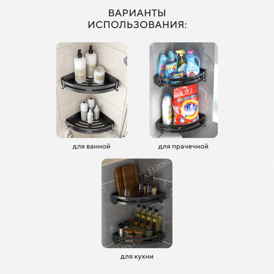Купить Полка для ванны Hausland без сверления, угловая, 3шт, 4х30х22,5 см, черная, металл
