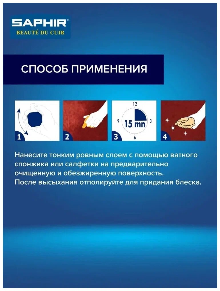 0851 Восстановитель кожи (жидкая кожа) Saphir Creme Renovatrice, Цвет Saphir 904 Морская волна
