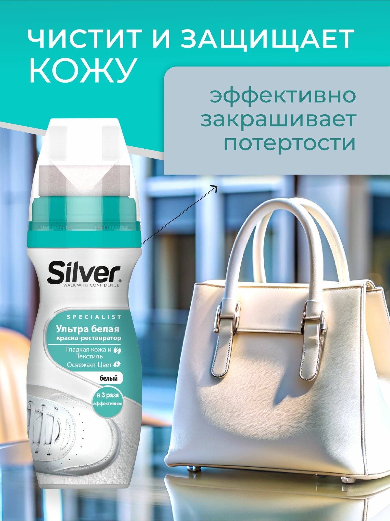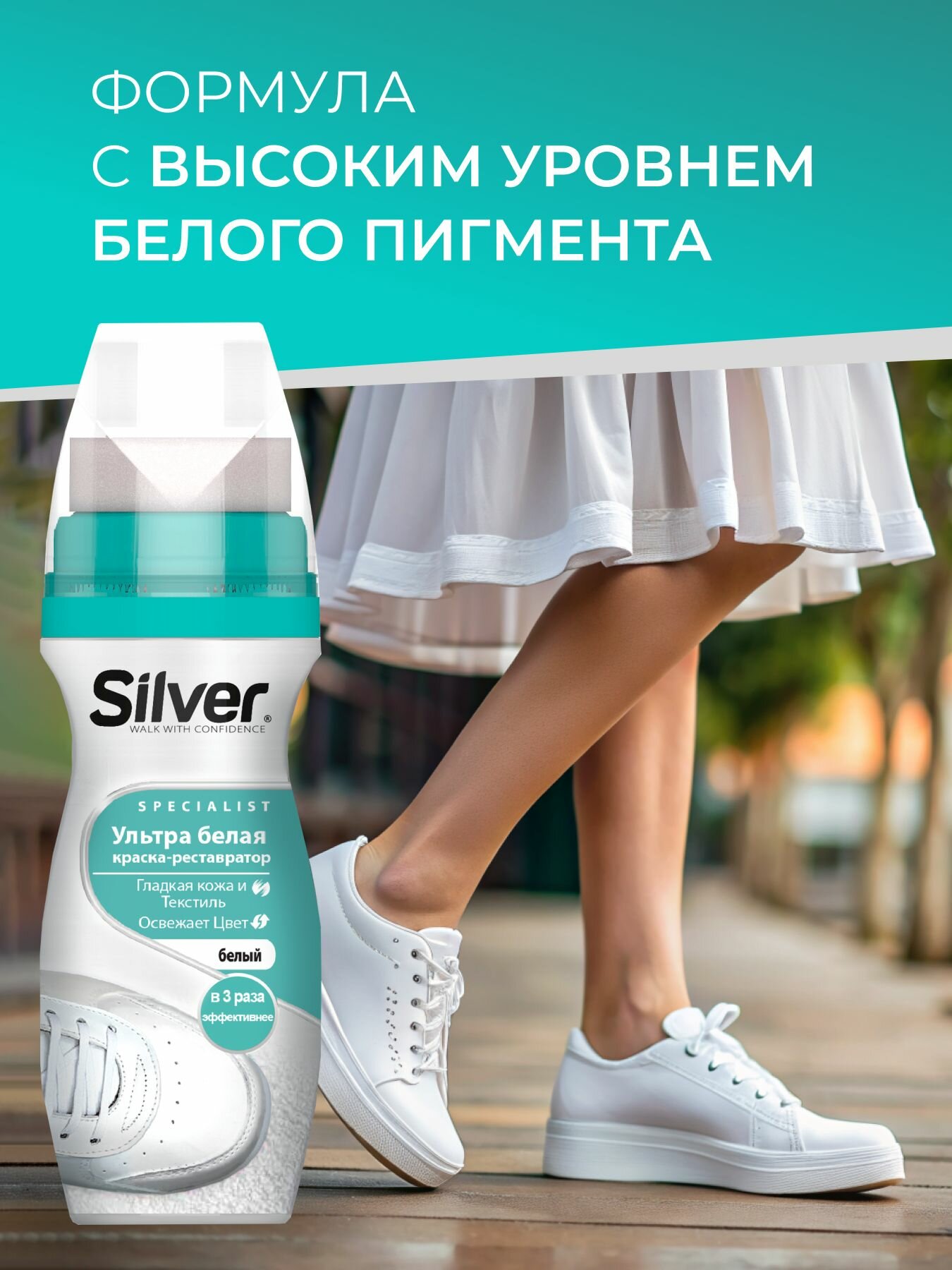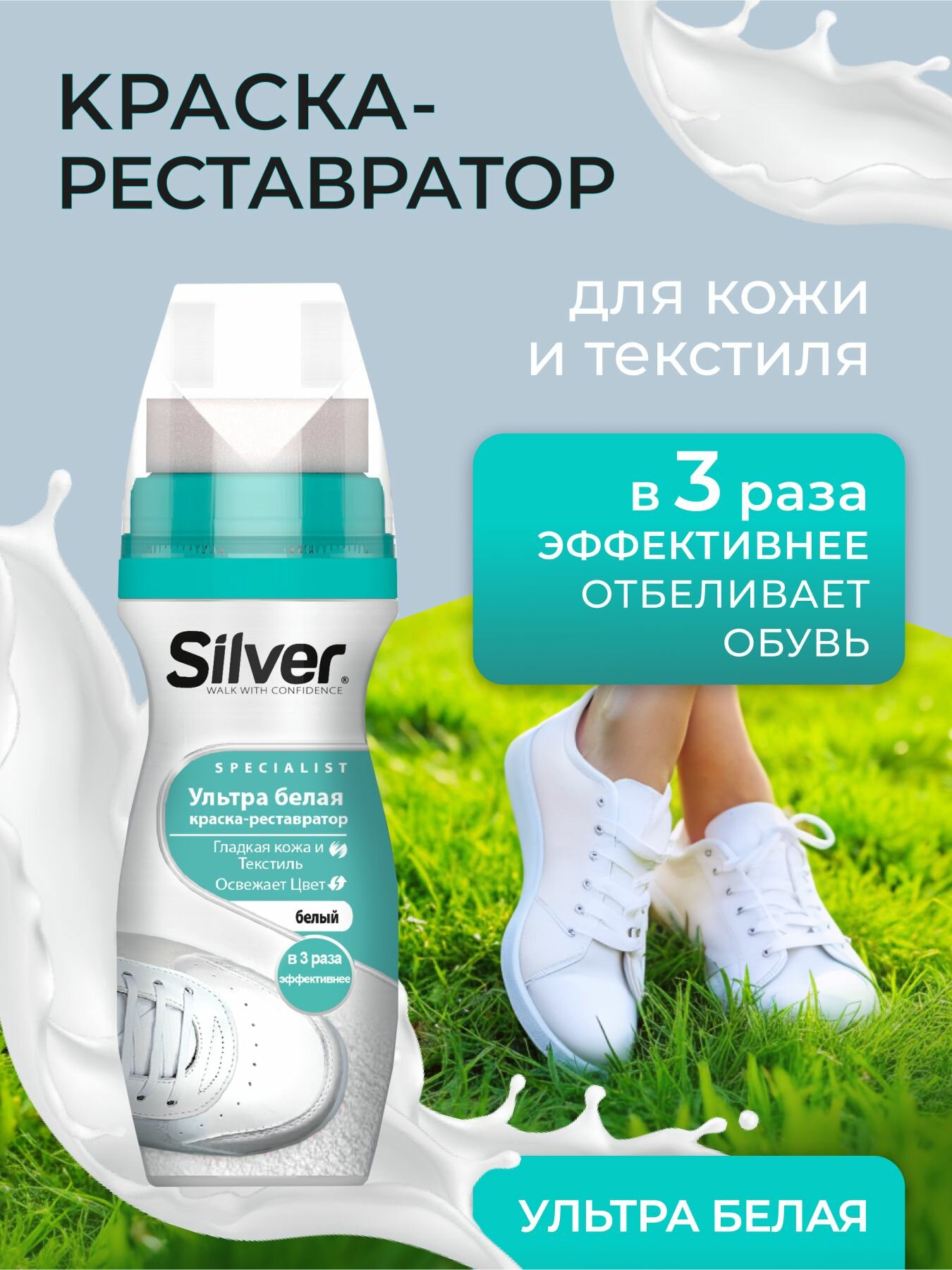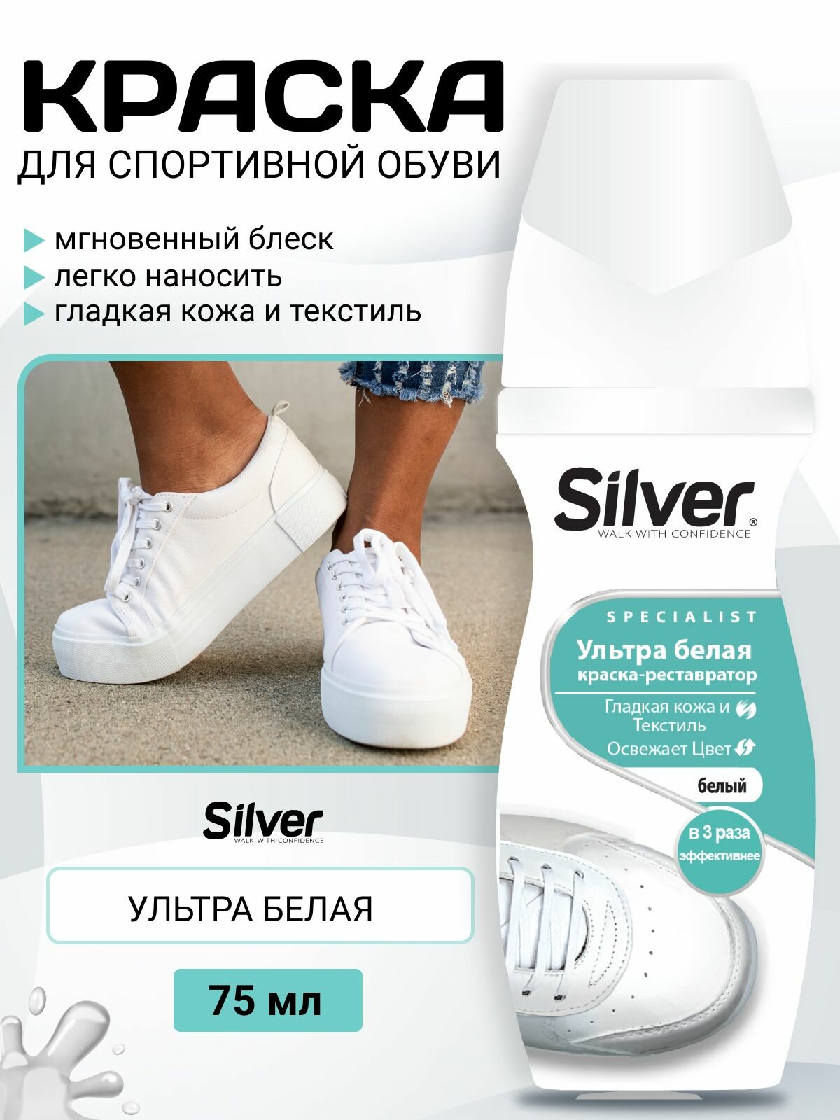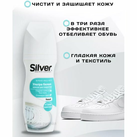 Kраска-реставратор для обуви SILVER Specialist 75 мл Ультра-белый