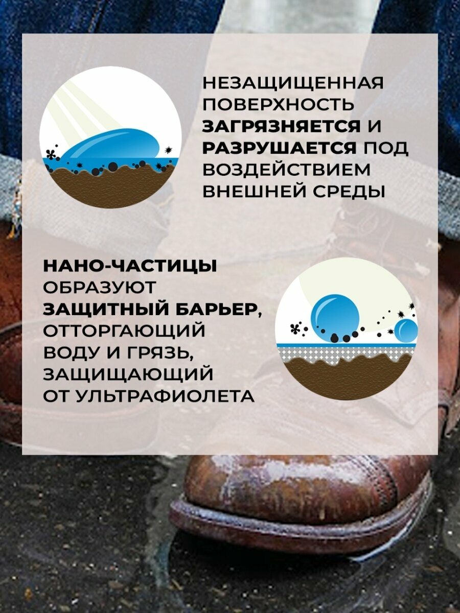 | Дополнительная информация | водоотталкивающая пропитка для обуви и изделий из жированных кож. Высокие технологии позволяют защитить изделия от агрессивного воздействия окружающей среды. После обработки материал покрывается защитным слоем и становится влагонепроницаемым и защищенным от грязи |