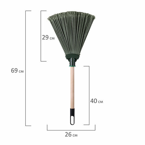 Веник синтетический веерный Лайма 29х26 см деревянный черенок 40 см еврорезьба