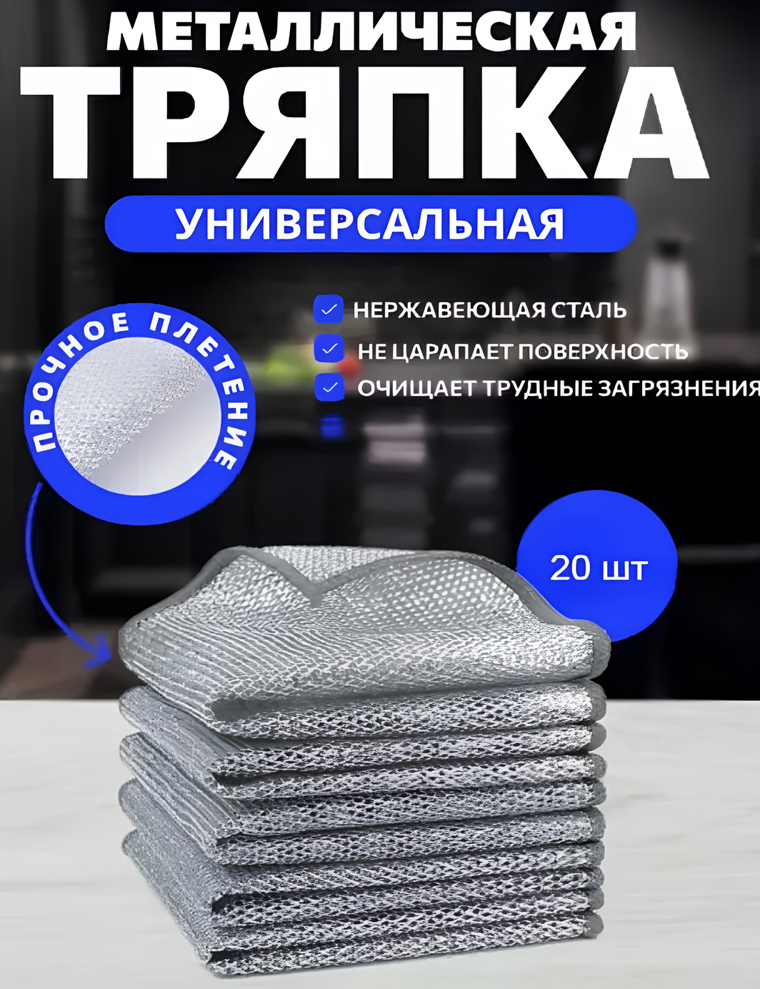 Металлическая узелковая кухонная тряпка, набор 20 шт