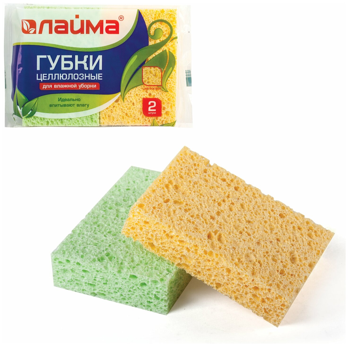 Купить Губки бытовые, 20х95х65 мм, комплект 2 шт., целлюлозные (губчатые) для посуды/уборки, LAIMA, К1000, 601590