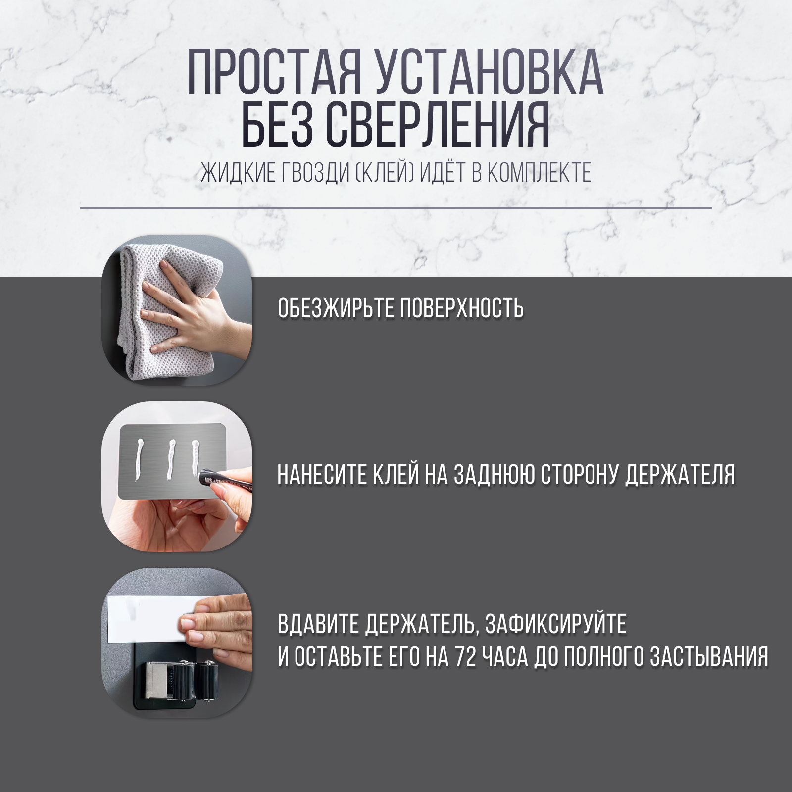 | Дополнительная информация | В комплекте с держателем идёт клей или же жидкие гвозди. |