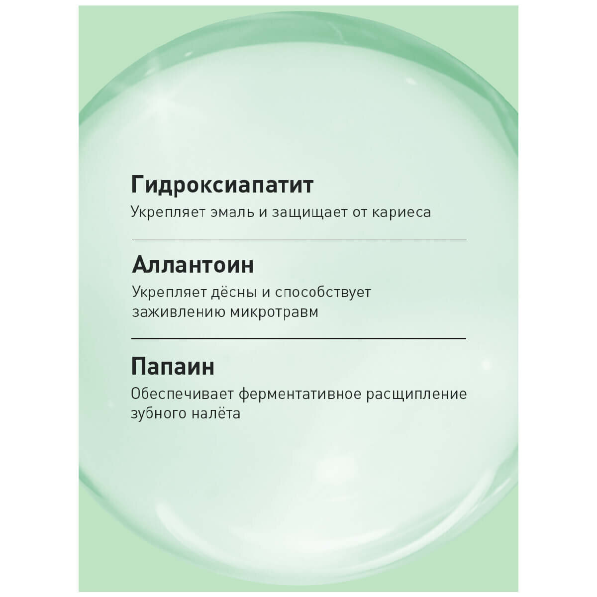 | Состав | вода, сорбитол, кремния диоксид, глицерин, кремния диоксид, женьшеня экстракт, кокамидопропилбетаин, натрия лауроилсаркозинат, гидроксиапатит, ксилитол, калия цитрат, аира экстракт, шалфея экстракт, титана диоксид, ароматизатор, тетракалия пирофосфат, ароматизатор, натрия карбоксиметилцеллюлоза, папаин, динатрия пирофосфат, натрия метилпарабен, натрия сахаринат, аллантоин, ксантановая камедь, натрия пропилпарабен, зелёного чая экстракт. |
