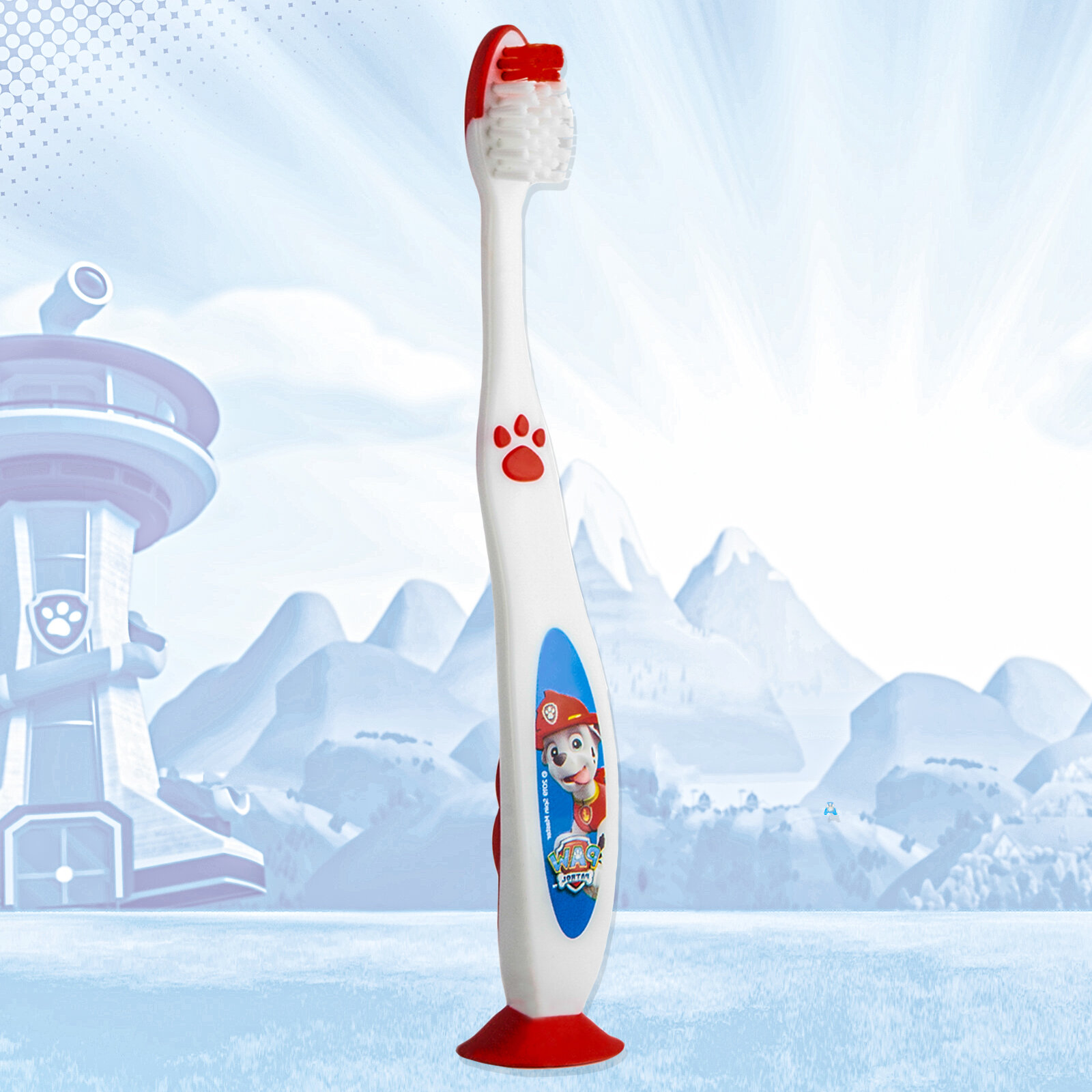Купить Зубная щетка детская Longa vita Paw Patrol. герой Маршалл щенячий патруль, на присоске, от 3-х лет, мягкая, цвет красный