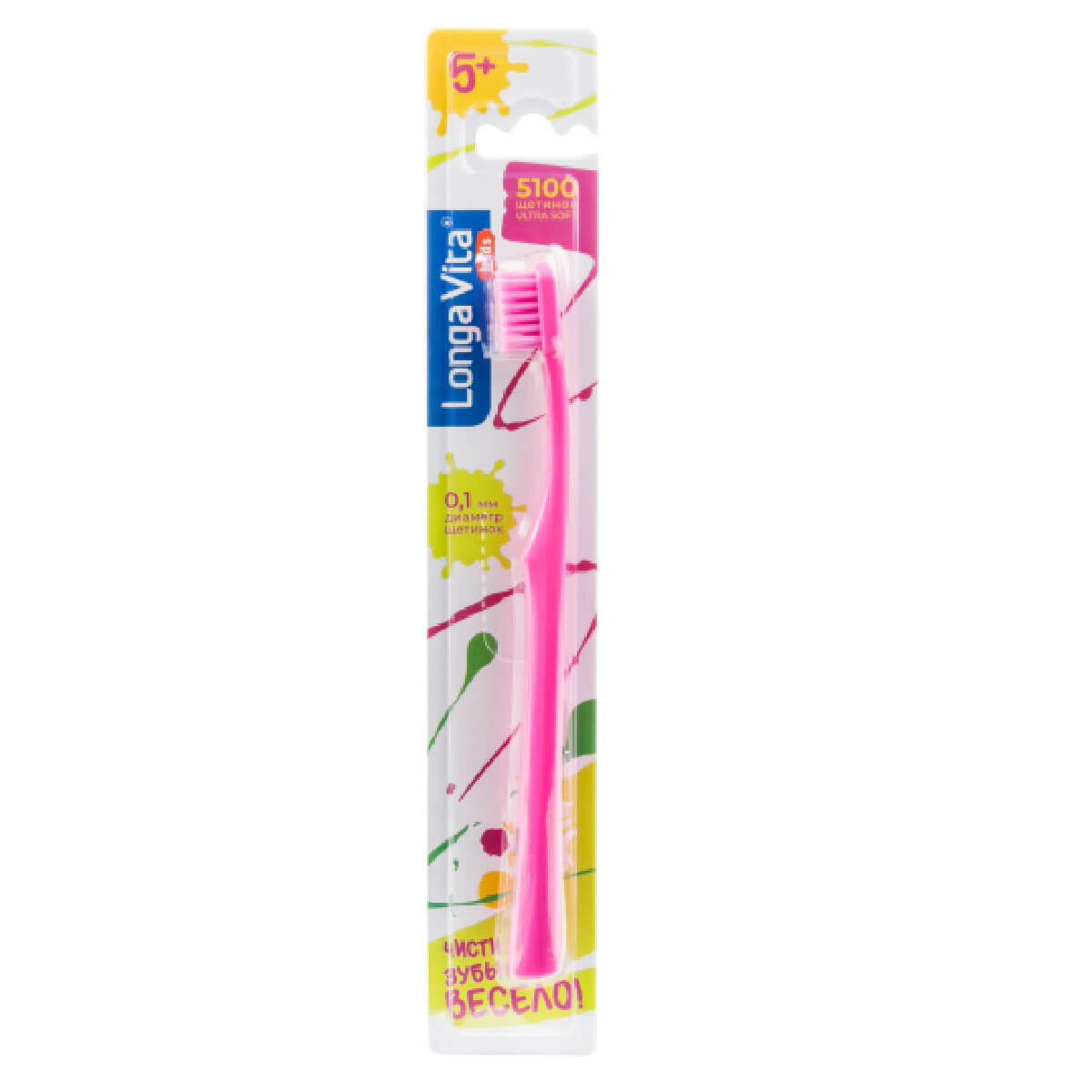 Детская зубная щётка, проф линейка 5100 щетинок, розовая, от 5 лет, Longa Vita