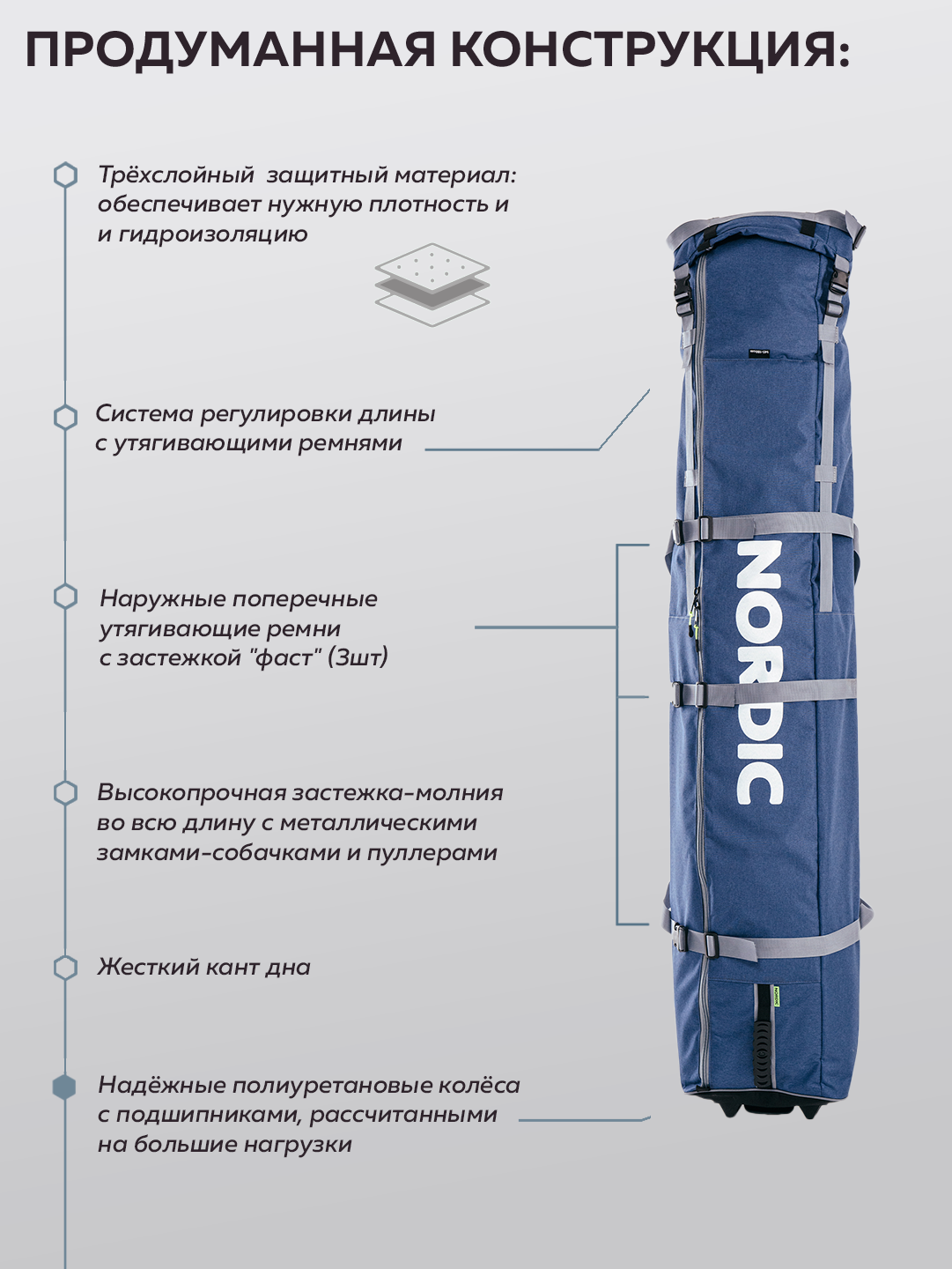 Чехол для лыж и сноубордов на колесиках Nordic 150-180 см синий