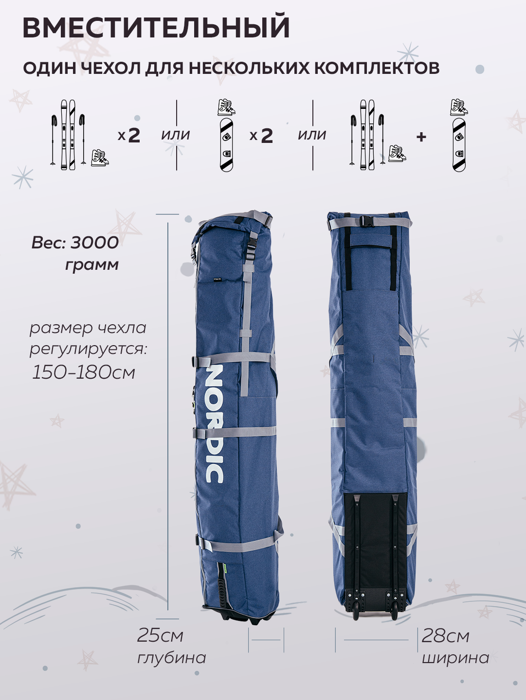 Чехол для лыж и сноубордов на колесиках Nordic 160-210 см темно-синий