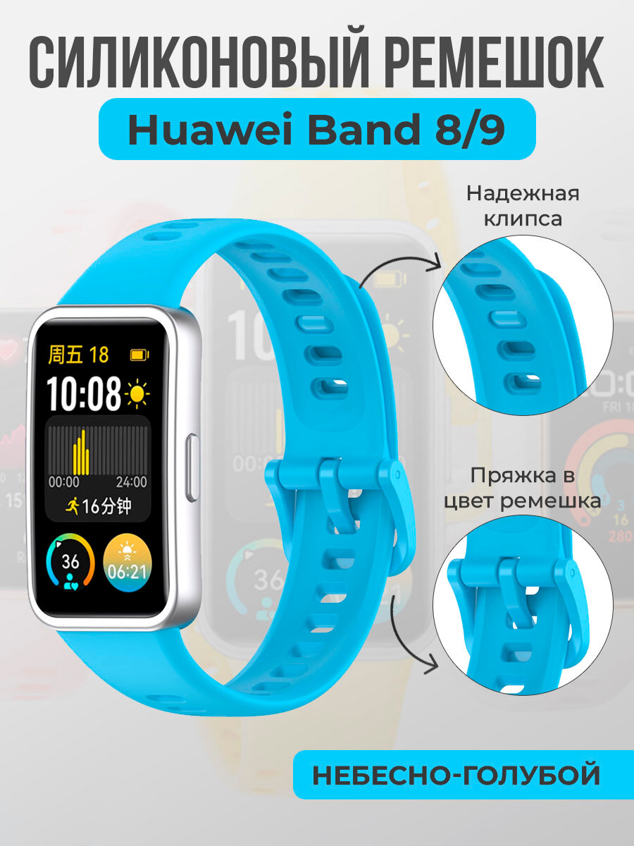 Купить Силиконовый ремешок для Huawei Band 8/9, с клипсой, небесно-голубой