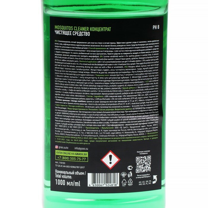 Grass Концентрат стеклоомывателя летний Mosquitos Cleaner, 1л