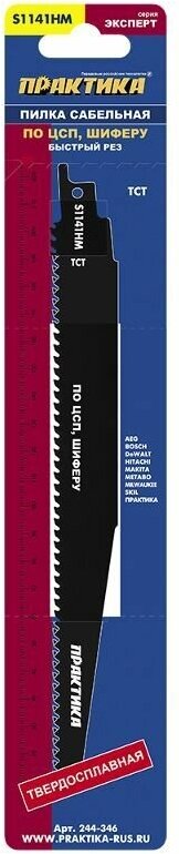Пилки для сабельной пилы по ЦСП и шиферу ПРАКТИКА S1141HM твердосплавные, 225 мм, шаг зубов 4 мм, 1 интересное: