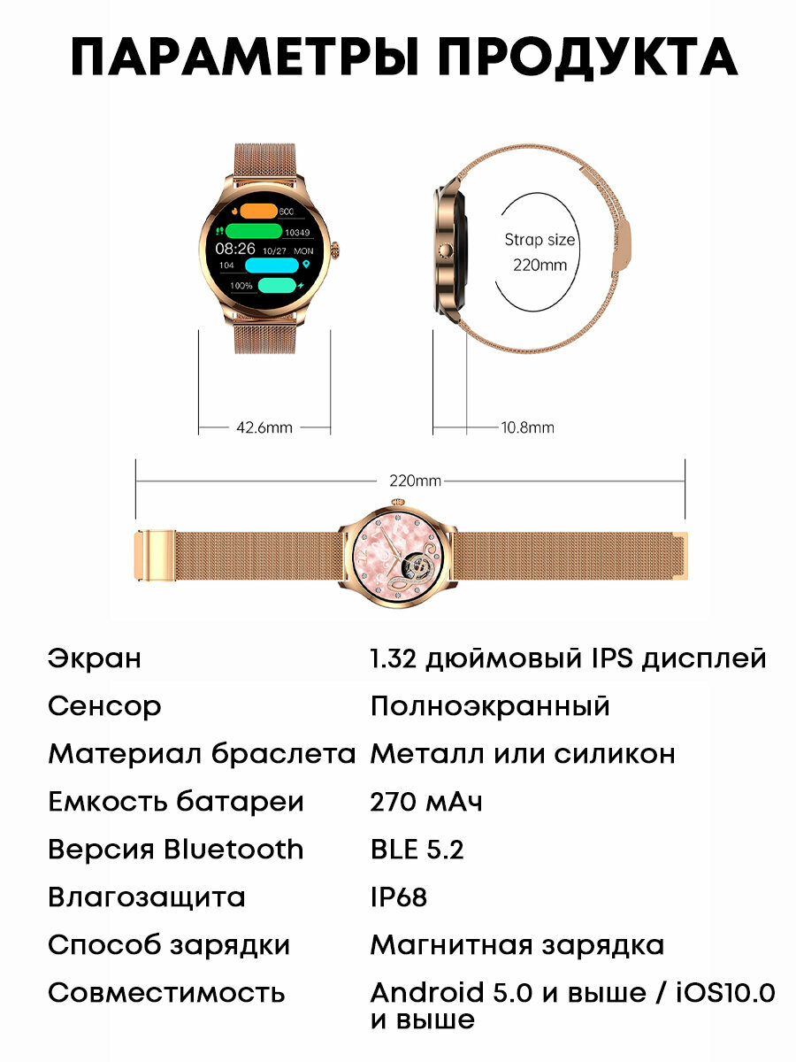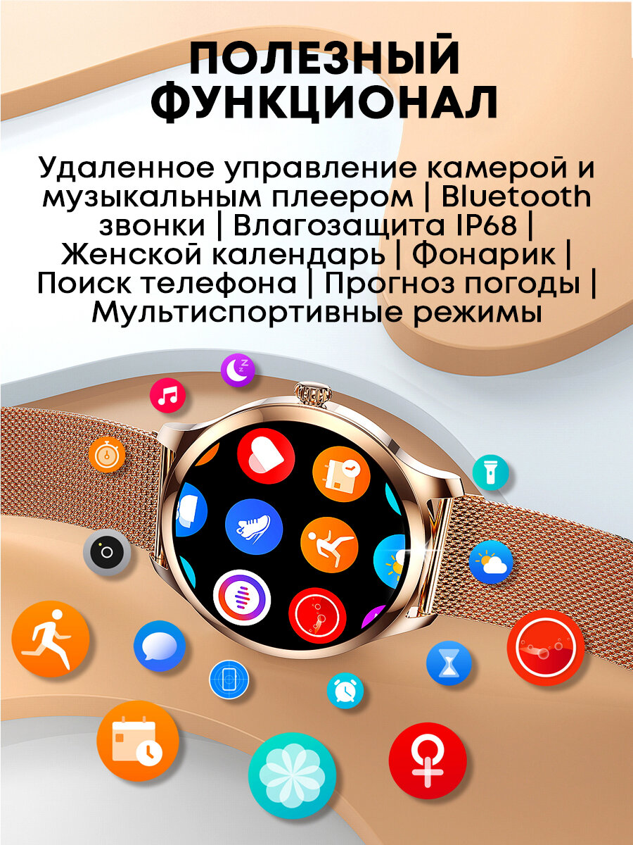Kingwear Женские смарт часы LW92 с bluetooth звонком (Золотистый) интересное: