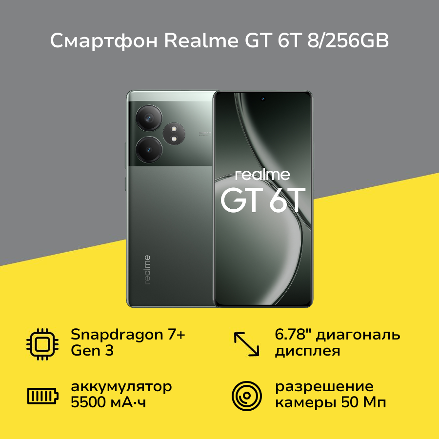 Смартфон realme GT 6T 8/256 ГБ RU, Dual nano SIM, Razor Green