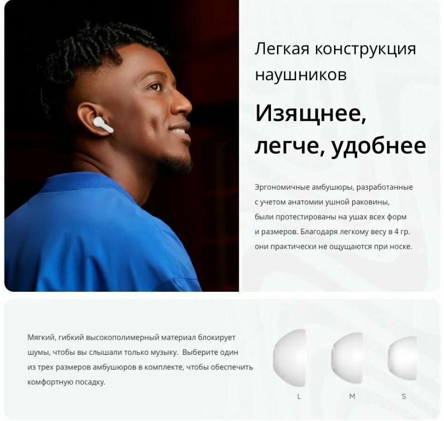 | Функции | Talk through (режим прозрачности) / вызов голосового ассистента / регулировка громкости |