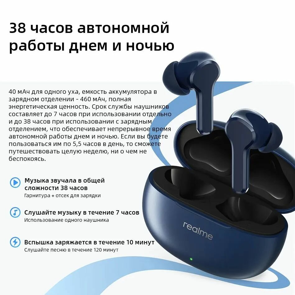 Наушники беспроводные Realme Buds T110 активное шумоподавление TWS блютуз, синие