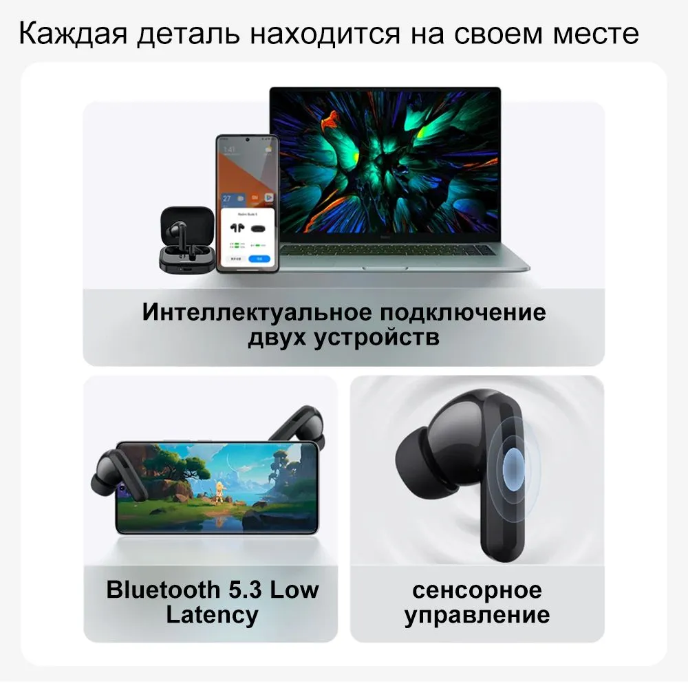 СохранитьБеспроводные наушники Redmi Buds 5 Black интересное: