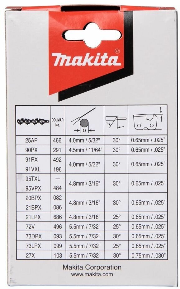 Цепь Makita длина 35см/14", шаг3/8, паз 1,3мм, звеньев 52, 91PX