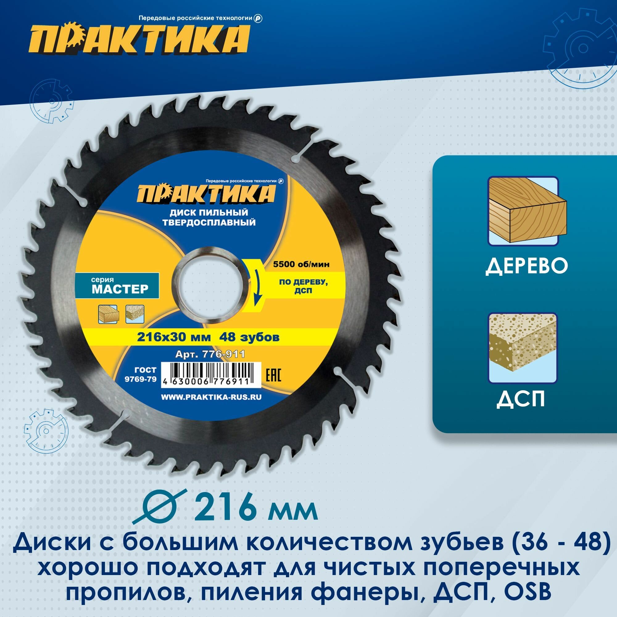 Диск пильный по дереву (216х30 мм, Z48) ПРАКТИКА 776-911