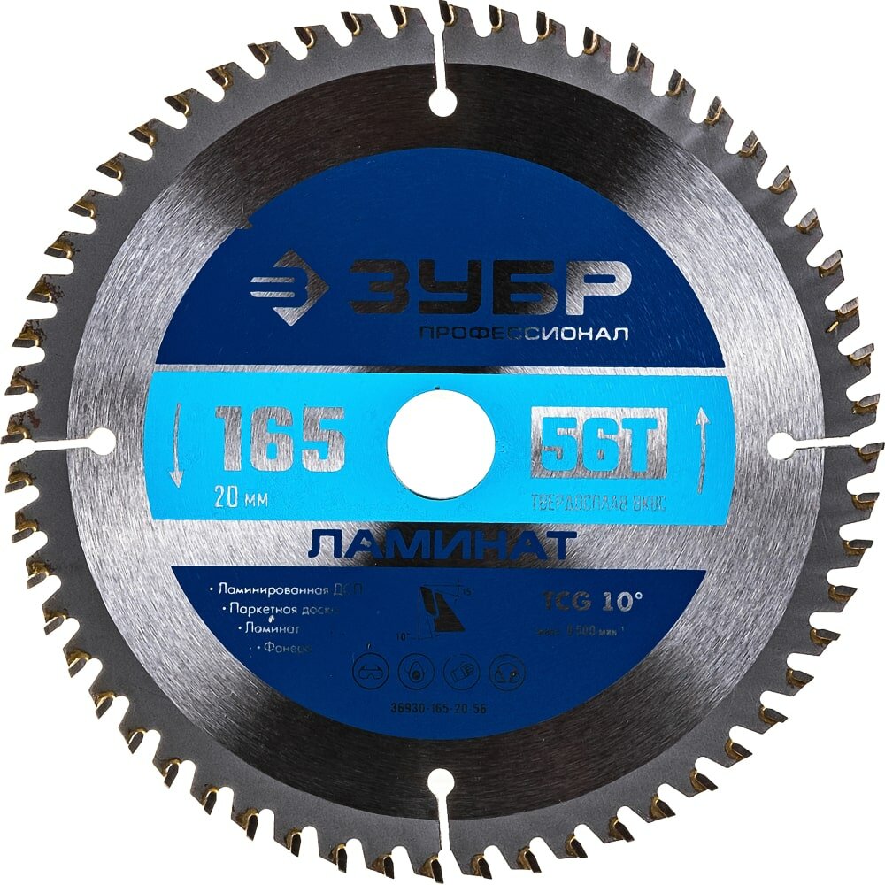ЗУБР Ламинат 165х20мм 56Т, диск пильный по ламинату ( 36930-165-20-56 ) интересное: