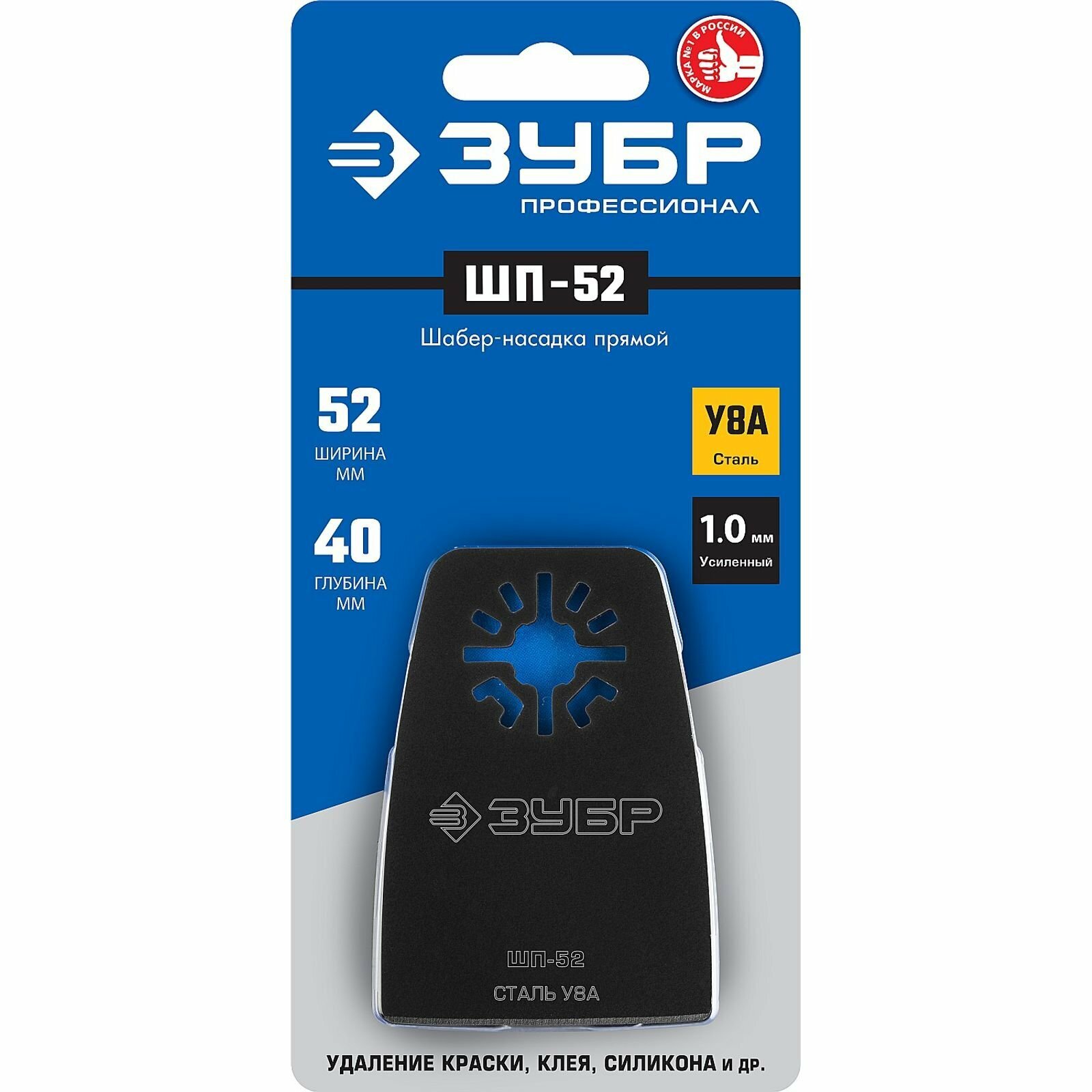 Насадка шабер прямой, 52х40мм, сталь У8А толщиной 1,0мм, OIS-хвостовик, ЗУБР ШП-52 , удаление краски, клея, силикона, и др., (15568-52)