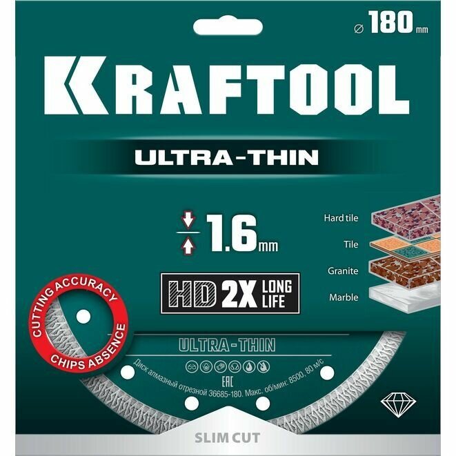KRAFTOOL ULTRA-THIN 180х1.6 мм ультратонкий алмазный диск (36685-180) (36685-180)