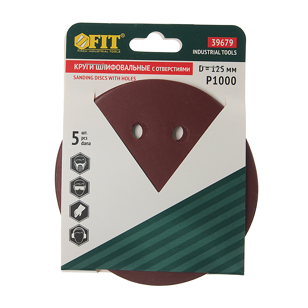 FIT Круги шлифовальные с отверстиями , алюминий-оксидные, 125 мм, 5 шт Р 1000 39679 интересное: