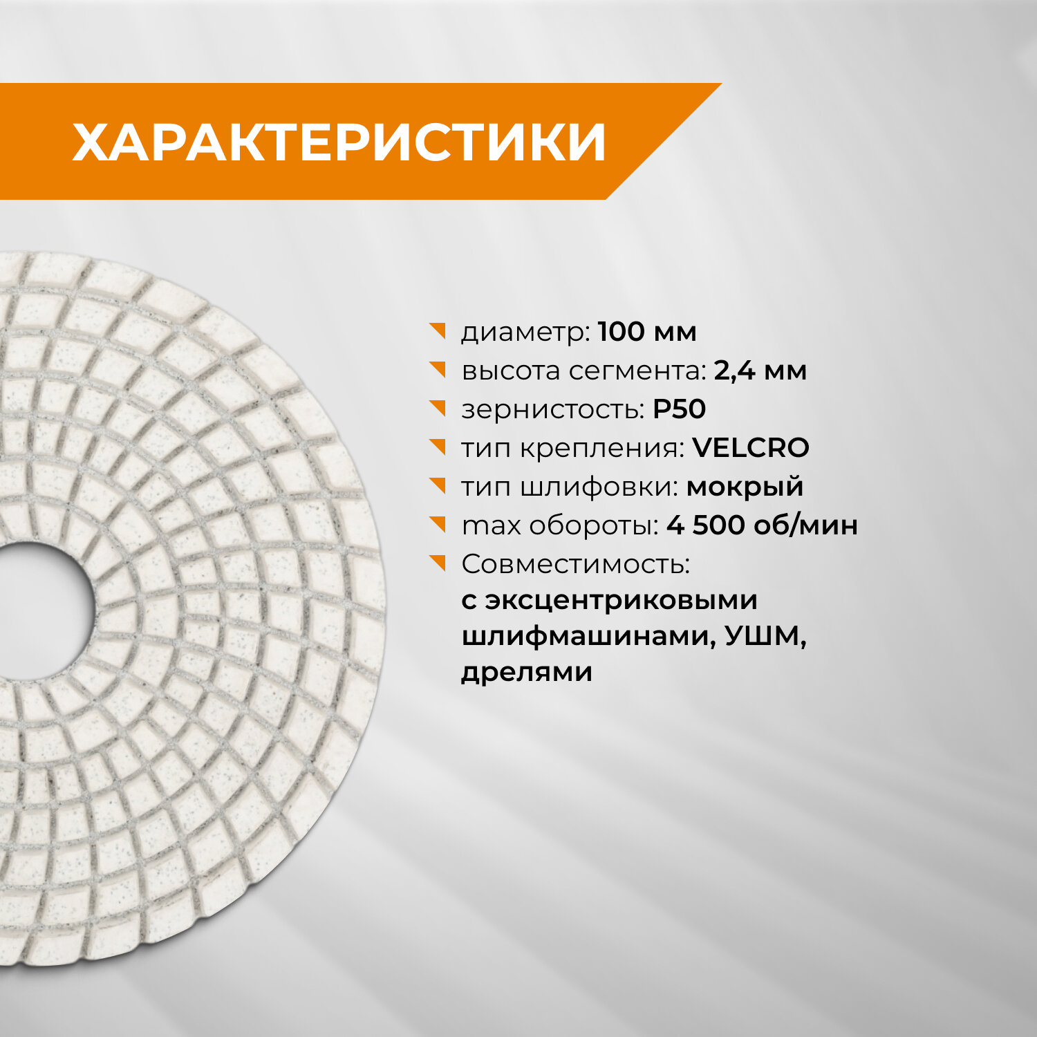 СохранитьКруг шлифовальный алмазный гибкий 100 мм Р50 черепашка для керамогранита АГШК мокрое шлифование RAGE by VIRA интересное: