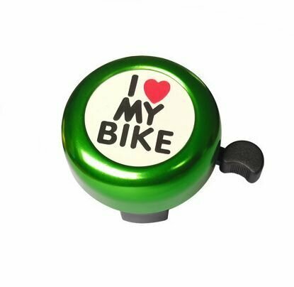 Звонок D:53мм "I LOVE MY BIKE" зелёный, алюминий/пластик
