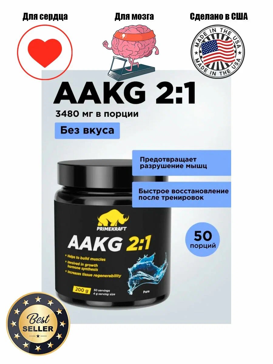 Аргинин порошок, 200 гр, Prime-Kraft AAKG 2:1 чистый интересное: