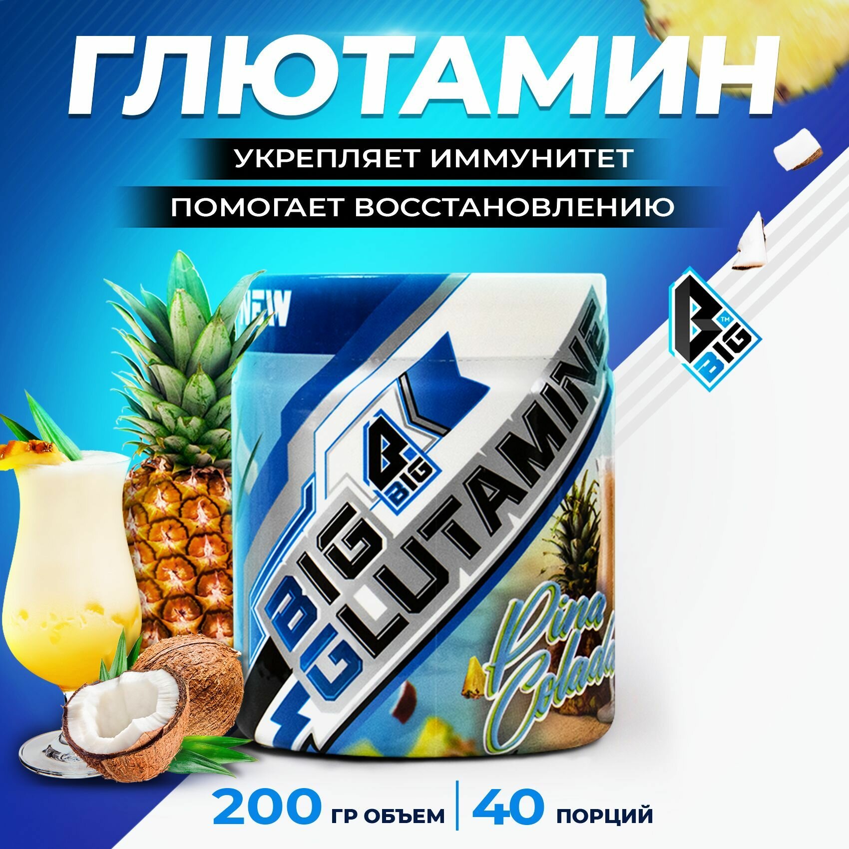 Купить Глютамин BIGSNT / аминокислота для роста мышц и укрепления иммунитета / порошок, 200 г (40 порций), вкус Пина Колада