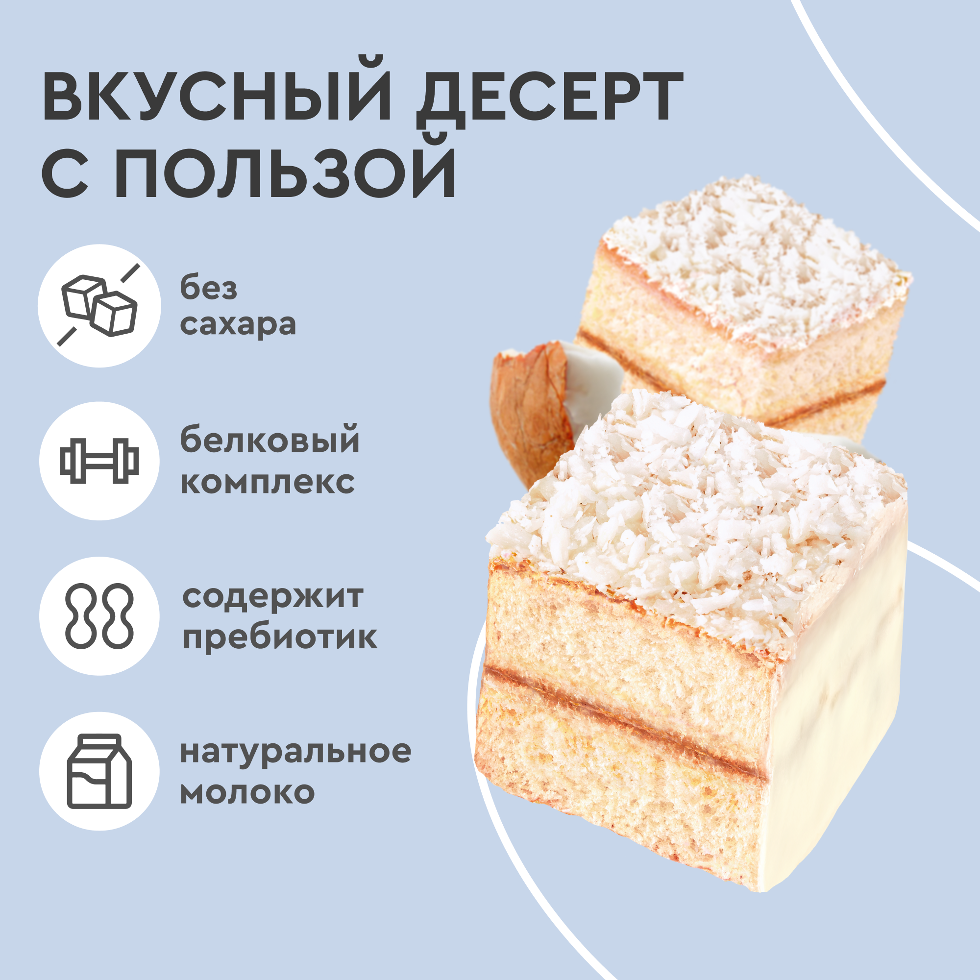 Протеиновые пирожные без сахара ProteinRex Ламингтон Молочный 8 шт х 50 г, 190 ккал, спортивное питание