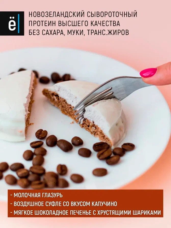 Протеиновое печенье ё|батон с белковым суфле без сахара Шоколад-Кофе, 9 шт по 50 г